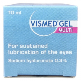 A VISMED® Gel Multi steril, tartósan ható szemnedvesítő gél, mely nátrium-hialuronát 0,3% hatóanyagot tartalmaz. Konzerválószerektől mentes termék, amely speciális kialakítású, többadagos 10 ml-es tartályban kapható. A termék célja a szemfelszín hosszan tartó hidratálása és kenése, ezzel segítve a szem komfortérzetének fenntartását. A készítmény gyártója a TRB CHEMEDICA AG, amely München közelében található, forgalmazója a Pro-Com XXI Bt., Szegeden. A termék megfelel a szigorú minőségi követelményeknek, CE jelöléssel rendelkezik, és steril, konzerválószertől mentes formulájának köszönhetően különösen szemérzékenyek számára ajánlott.