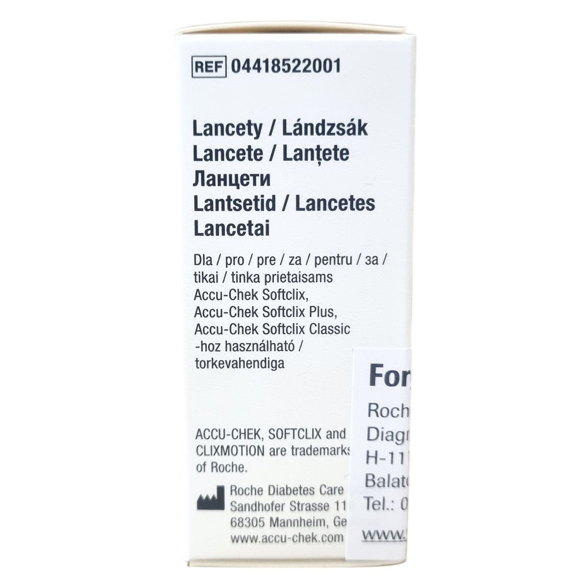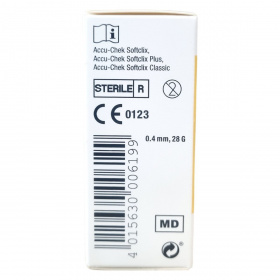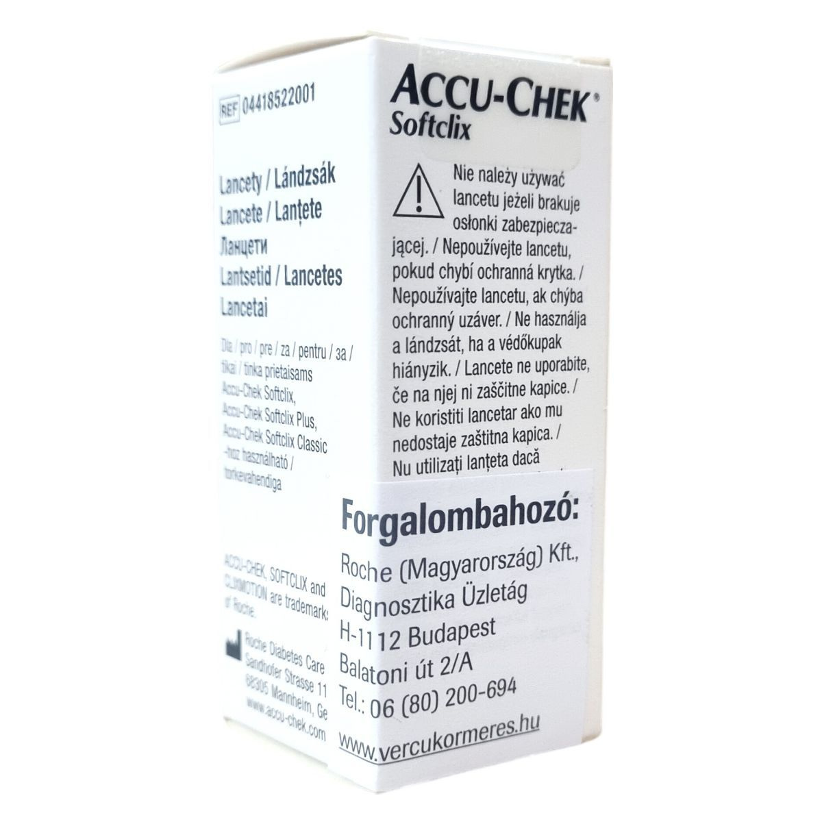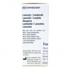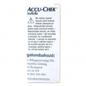 Az ACCU-CHEK Softclix lancetek 0,4 mm vastagságú, 28 G méretű sterilen csomagolt eszközök, melyeket a vércukorméréshez való biztonságos és higiénikus vérminta-vétel érdekében fejlesztettek ki. A termék megtalálható többszörösen megjelenő magyarországi forgalmazói adatokkal, és a termék újrahasznosítási jelzéssel rendelkezik. A használat előtt mindig ellenőrizze a védőkupak meglétét, mert a hiánya a termék használatának tilalmát jelenti. A lancetek kompatibilisek az Accu-Chek Softclix család készülékeivel, biztosítva a kényelmes és hatékony használatot.
