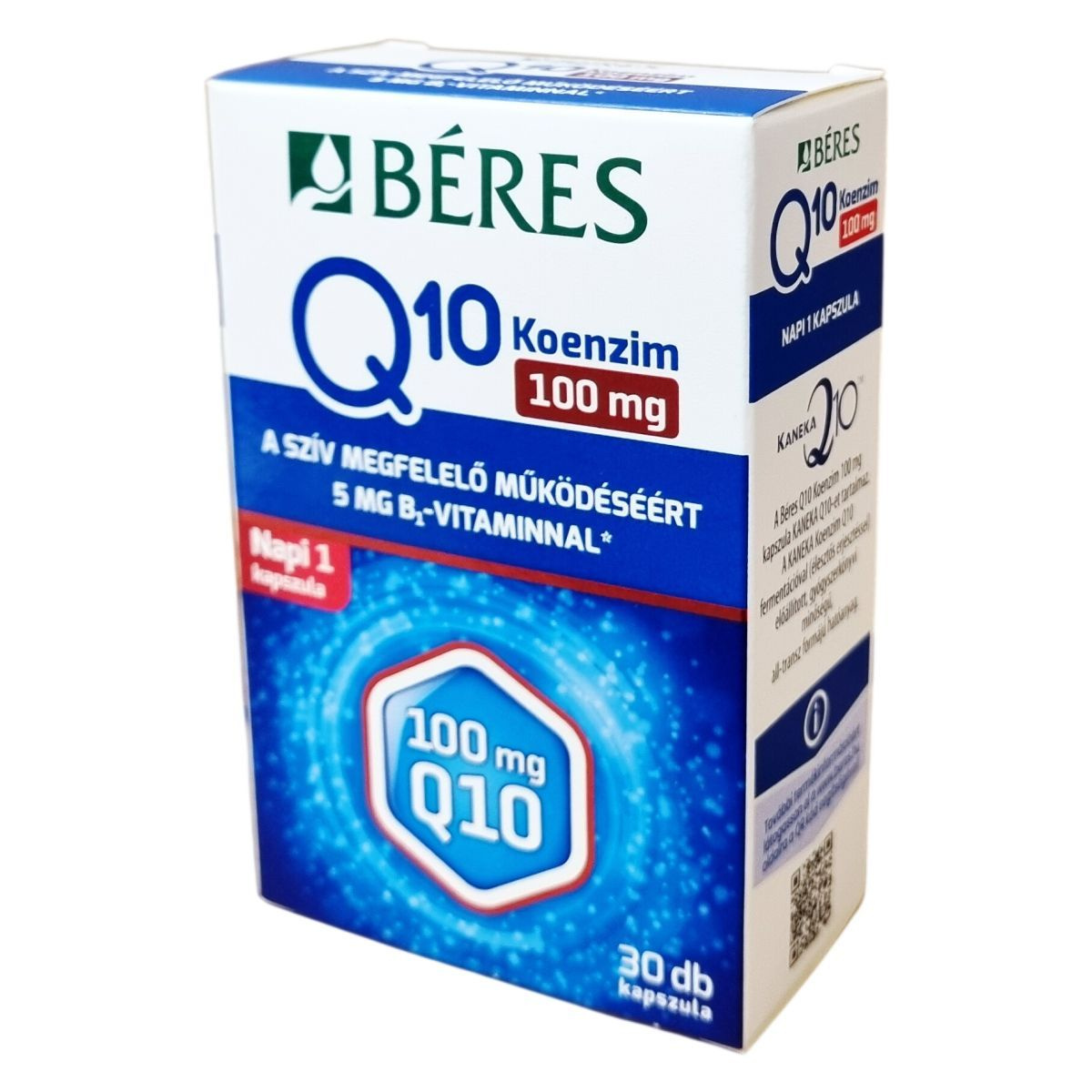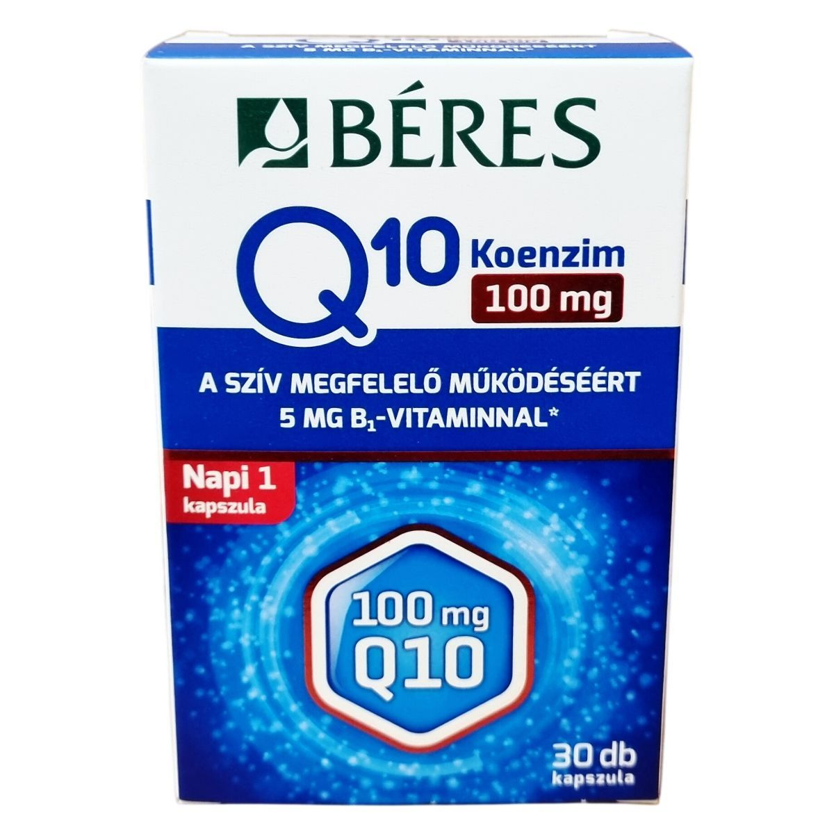 A Béres Q10 Koenzim 100 mg kapszula KANEKA Q10-et tartalmaz, amely fermentációval (élesztős erjesztéssel) előállított, gyógyszerkönyvi minőségű, all-transz formájú hatóanyag. A koenzim Q10 egy vitaminszerű anyag, amely a szervezet minden élő sejtjében jelen van; koncentrációja a szívben, a májban, a vesében és az izomszövetben a legmagasabb. Az életkor előrehaladtával a szervezet Q10 termelése fokozatosan csökken, ezért ezen időszakban javasolt fokozottan ügyelni a megfelelő bevitelre. A B1-vitamin hozzájárul a szív megfelelő működéséhez.