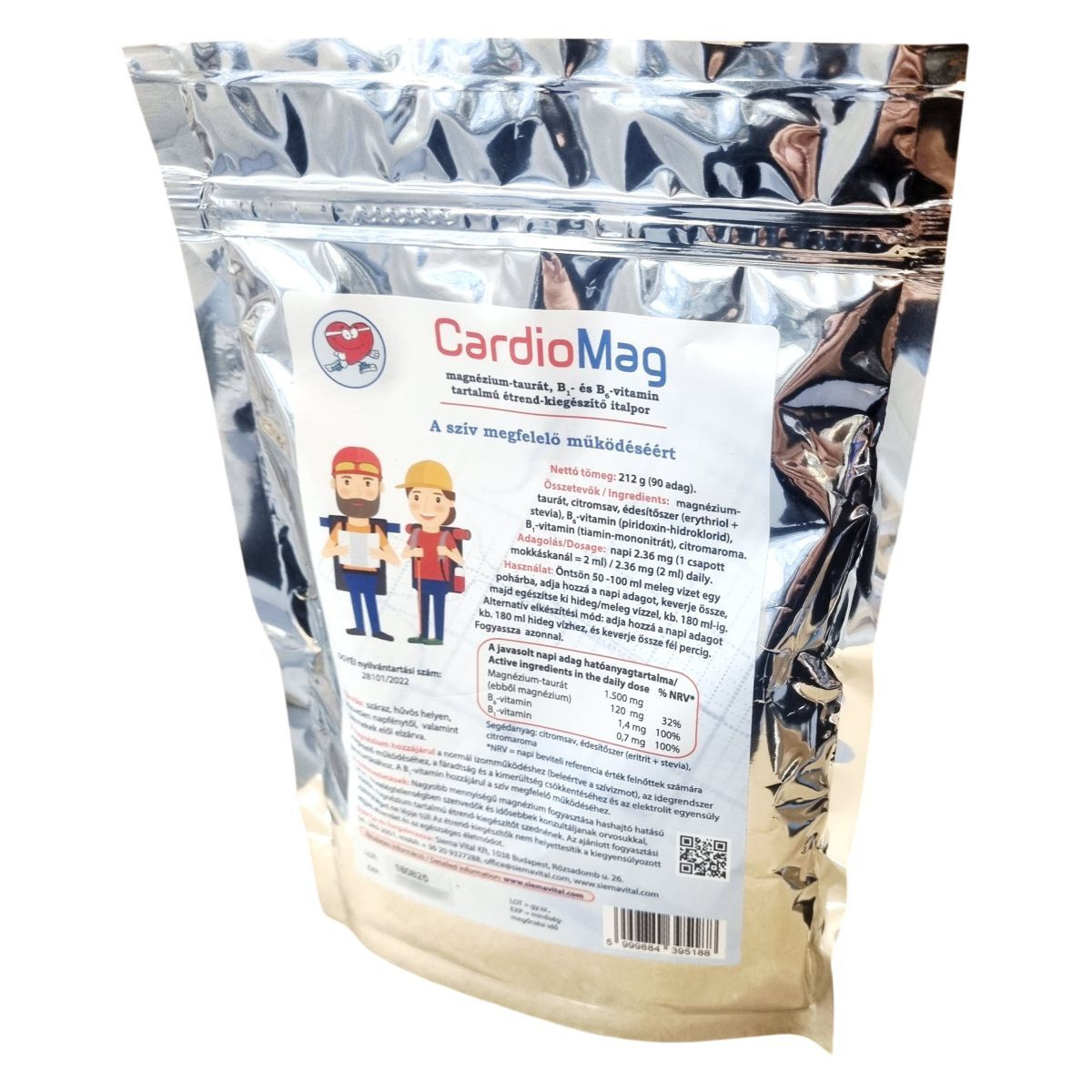 A CardioMag étrend-kiegészítő italpor magnézium-taurátot, továbbá B1- és B6-vitaminokat tartalmaz, melyek együttesen hozzájárulhatnak a szív megfelelő működéséhez. A magnézium szerepet játszhat az izomműködésben, ide értve a szívizmot, az idegrendszer megfelelő működésében, a fáradtság és kimerültség csökkentésében, valamint az elektrolit egyensúly fenntartásában. A készítmény segédanyagai közé tartozik a citromsav, természetes alapú édesítőszer (eritritol és stevia) és citromaroma, amelyek kellemes ízt biztosítanak az italpornak. Az adagolás során a napi adagot meleg vagy hideg vízhez kell keverni, majd azonnal fogyasztani. Az OGYÉI által nyilvántartott formula körültekintő tárolást igényel, és különösen ajánlott, hogy veseelégtelenségben szenvedők, illetve idősebb személyek orvosi tanácsot kérjenek a fogyasztás megkezdése előtt. A javasolt napi bevitelt nem szabad túllépni, és ez az étrend-kiegészítő nem helyettesíti a változatos, egészséges táplálkozást és életmódot.