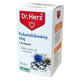 A Dr.Herz Feketekömény olaj + E-vitamin kapszula egy természetes étrend-kiegészítő, amely Egyiptomi feketeköménymag olajat (Nigella sativa) és E-vitamint tartalmaz. A terméket napi két kapszula fogyasztására javasolják főétkezések előtt, bőséges folyadékkal, szétrágás nélkül. A termék fő hatóanyagai a feketeköményolaj és az E-vitamin, amelyeket a szervezet általános támogatására használhatnak. Kizárólag természetes összetevőkből készül, és gondosan előállított kapszulában kerül forgalomba. A termék csak gyógyszertárakban és gyógynövényboltokban érhető el, ahol a Dr.Herz további vitaminokat, étrend-kiegészítőket, illóolajokat és gyógynövényes krémeket is kínál különféle egészségügyi területekre, mint az immunerősítés, anyagcsere, szív- és érrendszer, valamint haj, bőr és köröm ápolása. A termék tárolása szobahőmérsékleten, fénytől és nedvességtől védett helyen ajánlott. Az ajánlott napi adagot nem szabad túllépni, és a termék nem helyettesíti a kiegyensúlyozott étrendet és az egészséges életmódot.