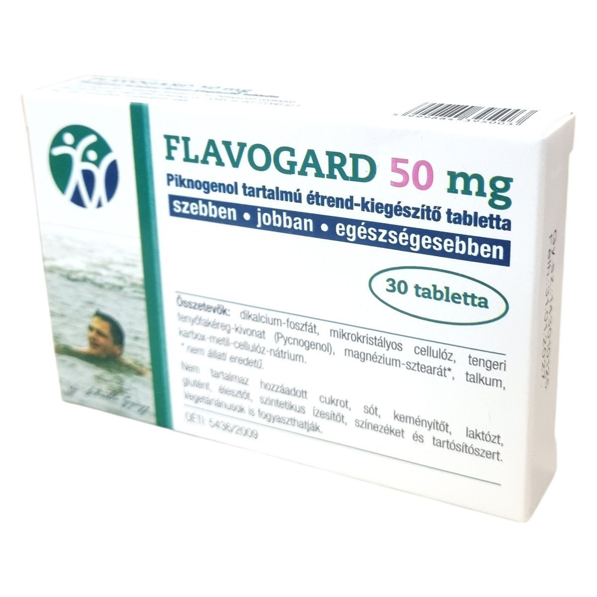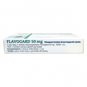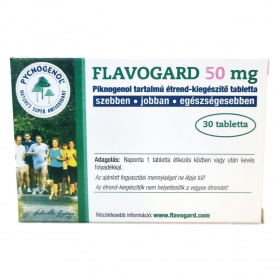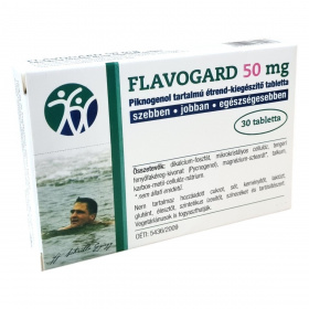 A Flavogard étrend-kiegészítő tabletta egy Pycnogenol tartalmú termék, amely szebben, jobban és egészségesebben támogatná a szervezet működését. Összetevői között megtalálható a tengeri fenyőfakéreg-kivonat, ami a Pycnogenol®, a Horphag Research Ltd. bejegyzett védjegye és alkalmazását több szabadalom is védi. A termék nem tartalmaz allergéneket, hozzáadott cukrot, sót, keményítőt, laktózt, glutént, élesztőt, mesterséges ízesítőket, színezékeket és tartósítószereket, így alkalmas vegetáriánus étrendbe is. A napi adag egy tabletta, amely 50 mg Pycnogenolt tartalmaz. A termék 30 tablettát tartalmaz, nettó tömege 7,5 gramm. Tárolását száraz, hűvös helyen javasolt végezni, gyermekektől elzárva. Az amerikai és nemzetközi szabadalmak védenek bizonyos alkalmazási módokat, támogatva ezzel a termék hitelességét és eredetiségét.