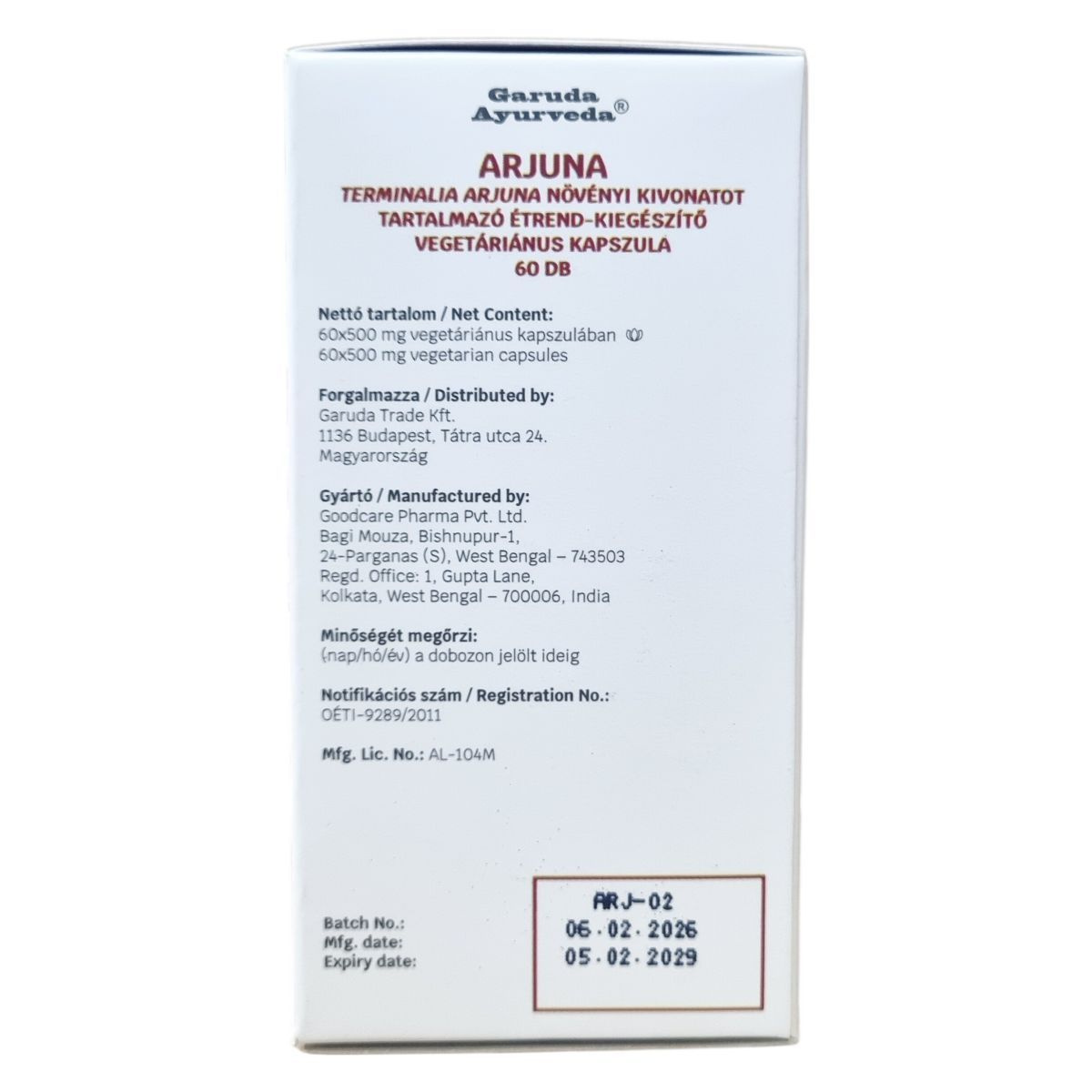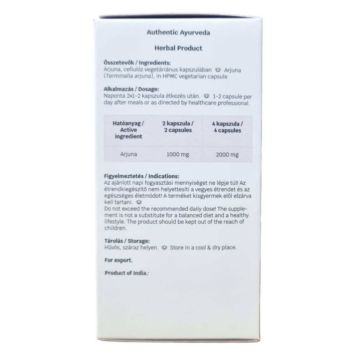 Terminalia arjunát tartalmazó étrend-kiegészitő kapszula. Az Arjuna India ősi gyógyászata, az Ayurveda szerint az a növény, amelyik segít a szívet egészségesen tartani, ezért évezredek óta használja a szív erősítésére. Alkalmazása jótékony hatással van a szívizom működésére, csökkenti a feszültséget és a vérnyomást. Aktív hatóanyagai tartalmaznak tanninokat, flavonoidokat, fitoszterolokat, ezenkívül ásványokat mint pl. kalcium, magnézium, cink és réz. Az Arjuna kapszula kúraszerű szedésével Ön is hozzájárulhat szíve egészségének megőrzéséhez.