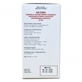Az Arjuna (Terminalia arjuna) az ájurvédikus gyógyászatban hagyományosan alkalmazott, triterpén-szaponinokat, flavonoidokat és tanninokat tartalmazó gyógynövény, amelyet elsősorban a kardiovaszkuláris rendszer támogatására használnak. Bioaktív vegyületei antioxidáns és gyulladásos folyamatokat moduláló tulajdonságokkal rendelkezhetnek, valamint hozzájárulhatnak az endotélfunkció és a szívizom élettani működésének fenntartásához. Feltételezhetően szerepet játszhat a lipidanyagcsere egyensúlyának támogatásában és a keringési rendszer adaptív válaszainak szabályozásában. Alkalmazása elsősorban szív- és érrendszeri komfort támogatása céljából merül fel. Megfelelő dózisban általában jól tolerálható, azonban vérnyomást vagy szívritmust befolyásoló gyógyszerek mellett körültekintést igényel. Egyéni egészségügyi állapot vagy gyógyszerszedés esetén javasolt szakemberrel konzultálni.