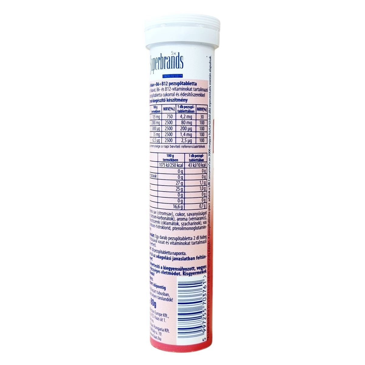 B12-vitamin: 2,5 µg / 1 db pezsgőtabletta