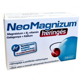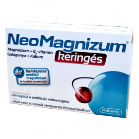 A NeoMagnizum® étrend-kiegészítő tabletta magnéziumot, B6-vitamint, galagonya kivonatot és káliumot tartalmaz. A galagonya kivonat támogathatja a perifériás vérkeringést, míg a kálium hozzájárulhat a normál vérnyomás fenntartásához. A magnézium és a B6-vitamin részt vehet a normál energiatermelő anyagcsere-folyamatokban, hozzájárulhat az idegrendszer megfelelő működéséhez és a fáradtság csökkentéséhez. A termék természetes eredetű összetevőket tartalmaz, és Lengyelországban készül. A kosnilvörös A színezék a gyermekek tevékenységére és figyelmére káros hatást gyakorolhat.