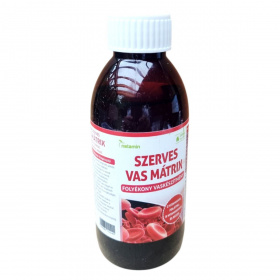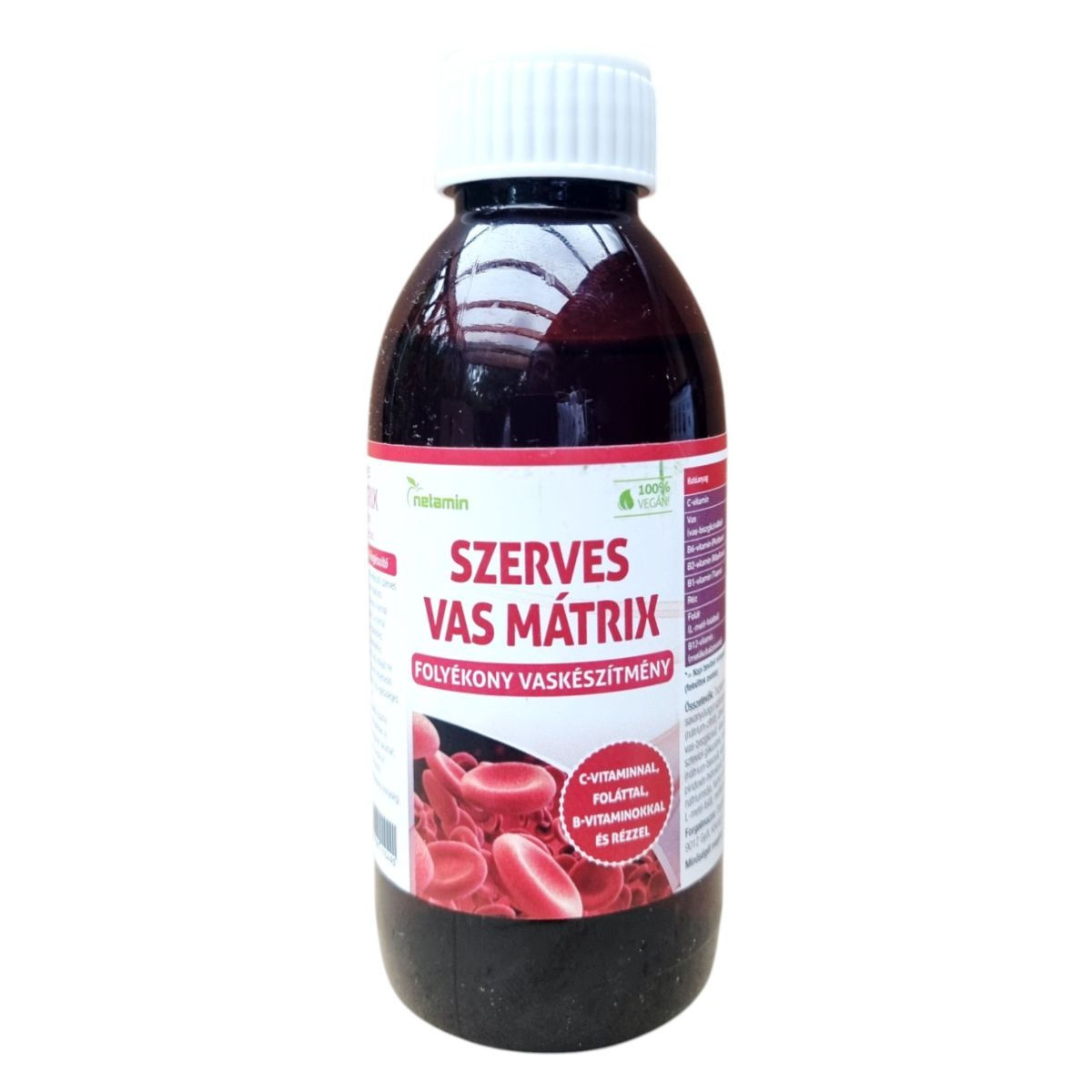 A Netamin Szerves Vas Mátrix egy folyékony étrend-kiegészítő, amely szerves vasat, C-vitamint, folátot, B-vitaminokat és rezet tartalmazhat. Ezek az összetevők hozzájárulhatnak a normál szellemi működés fenntartásához, a normál vörösvérsejt- és hemoglobin-képződéshez, valamint a fáradtság és kifáradás csökkentéséhez. A termék bio és vegán étrendi irányzatoknak is megfelelhet. Fontos, hogy az ajánlott napi adagot ne lépje túl, és a terméket gyermekektől elzárva tárolja.