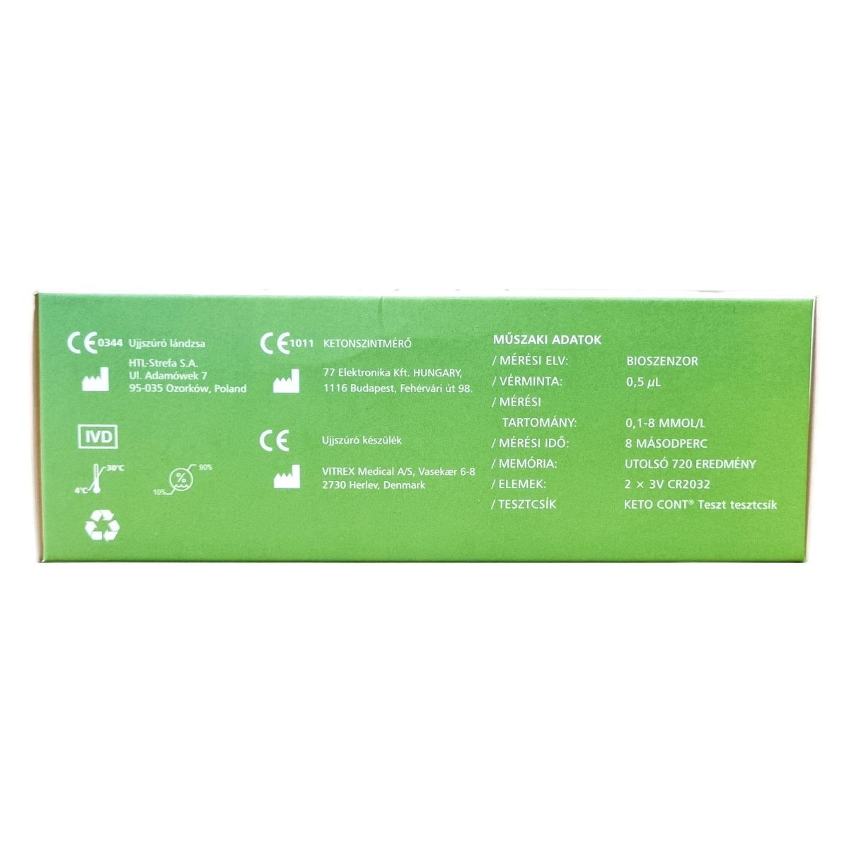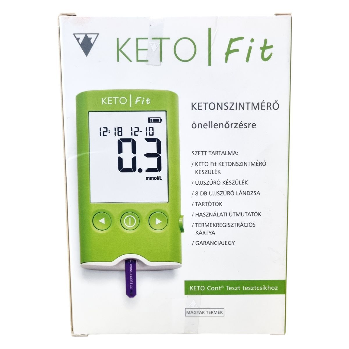 A KETO Fit ketonszintmérő egy teljes szett, amely tartalmazza a mérőkészüléket, egy ujj-szúró készüléket, 8 darab ujj-szúró lándzsát, tartótokot, használati útmutatókat, termékregisztrációs kártyát és garanciajegyet. A mérési elv bioszenzor alapú, a vérmintaként 0,5 µl szükséges, a mérési tartomány 0,1–8 mmol/l, az eredmény 8 másodperc alatt elkészül. A készülék memóriája 720 legutóbbi mérési eredményt tárol. Energiaellátását 2 db 3V CR2032 elem biztosítja. A készülék USB csatlakozási lehetőséggel, csíkkidobó funkcióval, valamint Dcont® barát és menü rendszerrel rendelkezik, kódolás nélkül működik. Magyar termék, a KETO Cont® Teszt tesztcsíkkal kompatibilis. Az ujj-szúró készülék gyártója a VITREX Medical A/S Dánia, a készülék helye Budapest, Magyarország.