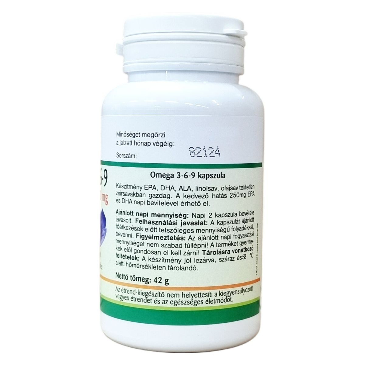 Összetevők: halolaj, ligetszépe olaj, szűz olívaolaj, zselatin, D-alfa-tokoferol, glicerin (nedvesítőszer), víz. Az EPA és DHA hozzájárul a szív megfelelő működéséhez. A kedvező hatás 250mg EPA és DHA napi bevitelével érhető el. Tartalom: 90 db kapszula. Kapszula súlya: 700 mg. Nettó tömeg: 63 g.