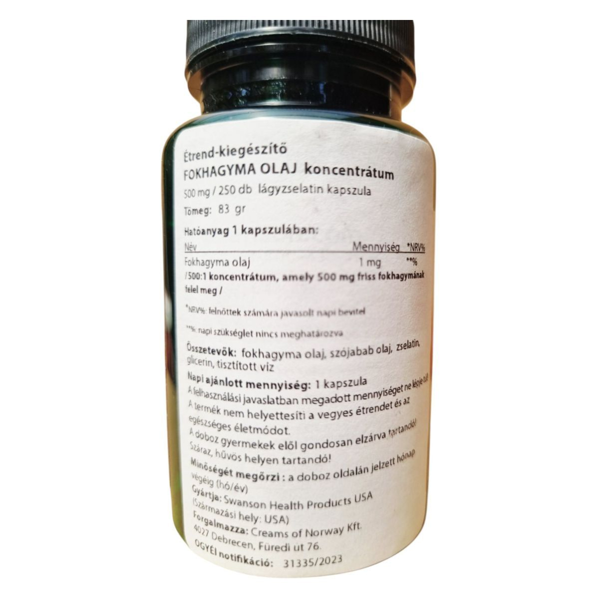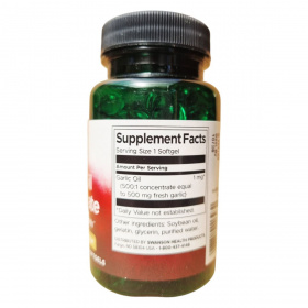 A Swanson Garlic Oil Concentrate fokhagyma olaj koncentrátumot tartalmaz, amely 500 mg friss fokhagymának felel meg. A termék hozzájárulhat a szív- és érrendszer egészségének támogatásához.