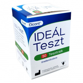 A Dcont IDEÁL Teszt vércukorszint meghatározására szolgáló in vitro diagnosztikai tesztcsík. A termék kompatibilis a Dcont IDEÁL, TREND, HUNOR, MAGOR, NEMERE és MONDA készülékekkel. A doboz 50 darab tesztcsíkot tartalmaz. A termék felbontást követően is a dobozon feltüntetett lejáratig eltartható.