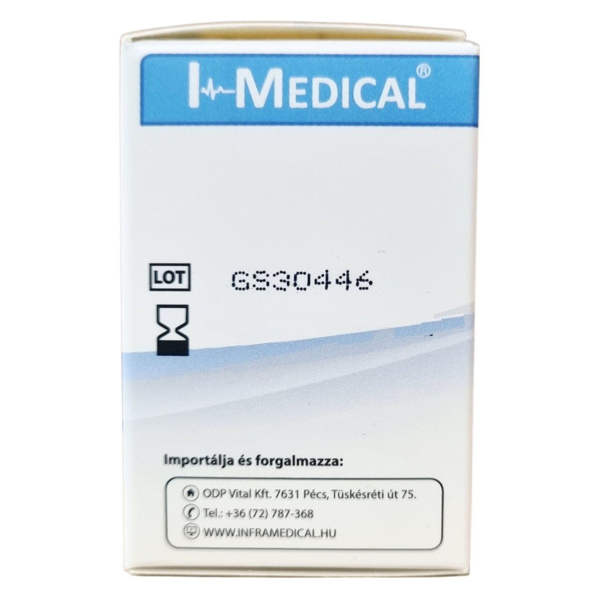 Az I-MEDICAL vércukorszint-ellenőrző tesztcsíkok, BS-102 típusú termék kompatibilis az I-Medical BG-208 vércukormérőkkel, és friss kapilláris teljes vérből történő mérésre szánt in vitro diagnosztikai eszköz. A tesztcsíkokat nem szabad lenyelni és nem alkalmasak emberi fogyasztásra. A használat során kerülni kell a sérült, hajlított vagy újrahasznált tesztcsíkokat. A termék 50 darabos kiszerelésben érhető el, és a csíkokat hűvös, száraz helyen kell tárolni 1-30°C között, lefagyasztani vagy hűtőben tárolni tilos. A felbontástól számított 3 hónapon belül el kell használni a csíkokat. Az eszköz rendelkezik CE-jelzéssel (CE 0197) és az IVD minősítéssel, garantálva ezzel megfelelőségét és biztonságát.