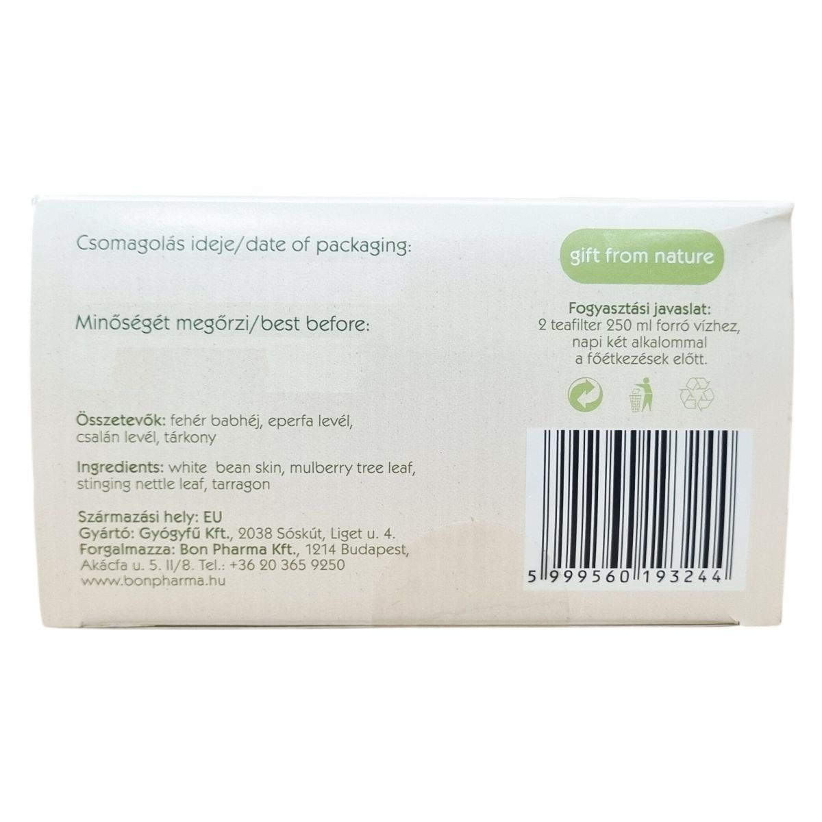 fehér babhéj, eperfa levél, csalán levél, tárkony