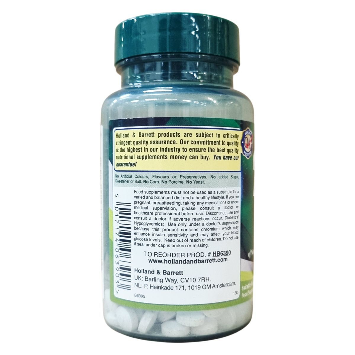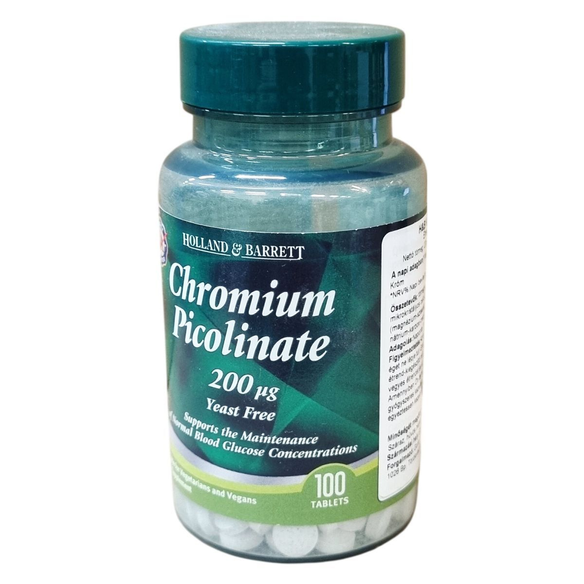 A Holland & Barrett Chromium Picolinate készítmény szigorú minőség-ellenőrzés mellett készül, hogy a legjobb minőségű táplálékkiegészítőt biztosítsa. A termék nem tartalmaz mesterséges színezékeket, ízesítőket vagy tartósítószereket, továbbá nem tartalmaz hozzáadott cukrot, édesítőszert, sót, kukoricát, sertéshúst és élesztőt. A készítmény 27 g nettó tömeget képvisel 100 tablettában, melynek napi adagja 1 tabletta. A króm-pikolinát 200 µg mennyiségben van jelen, ami a felnőttek számára ajánlott napi bevitel 500%-a. Az étrend-kiegészítő nem helyettesíti a változatos, kiegyensúlyozott étrendet és az egészséges életmódot, terhesség vagy gyógyszeres kezelés esetén orvosi tanácsadás ajánlott.