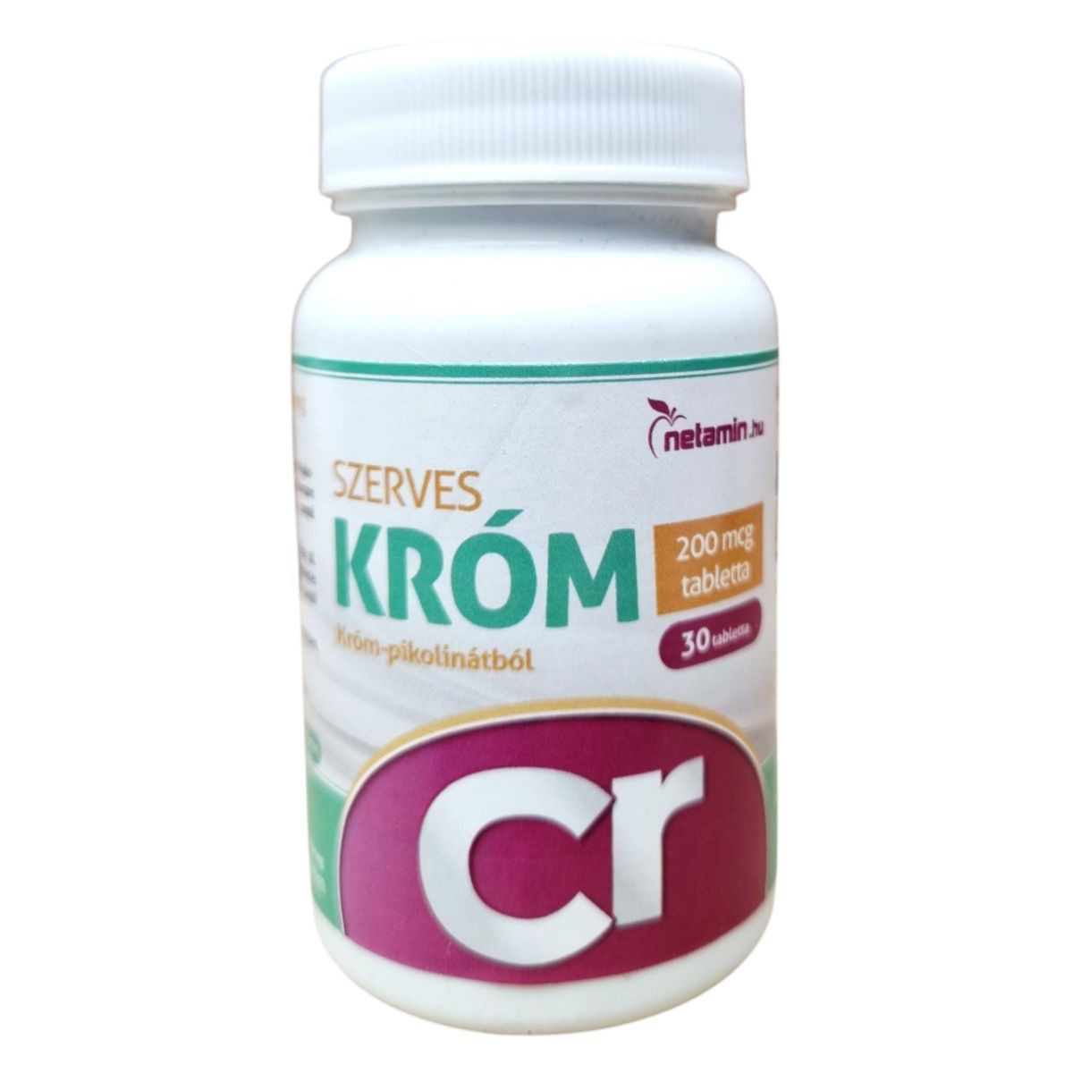 A Netamin Szerves Króm tabletta egy króm-III-pikolinát tartalmú étrend-kiegészítő, amely 200 mcg krómot tartalmaz tablettánként. A termék hozzájárulhat a normál vércukorszint fenntartásához és a makrotápanyagok normál anyagcseréjéhez. A tégely 100%-ban újrafelhasznált műanyagból készült, így környezetbarát választás lehet. A termék bio étrendi irányzatba illeszkedik, és a származási helye az USA. A Netamin Szerves Króm tabletta forgalmazója az Organikus Egészség Egyesület, amely Győrben található.