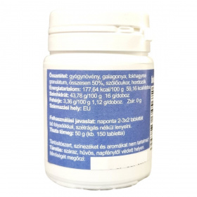 Gyógynövény, galagonya, fokhagyma granulátum, összesen 50%, szőlőcukor, hordozók
