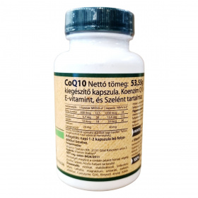 Koenzim Q10-et, E-vitamint és szelént tartalmazó étrend-kiegészítő kapszula.