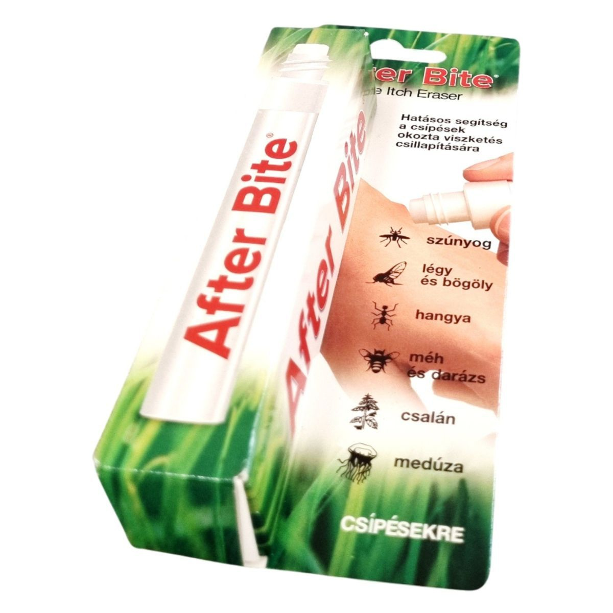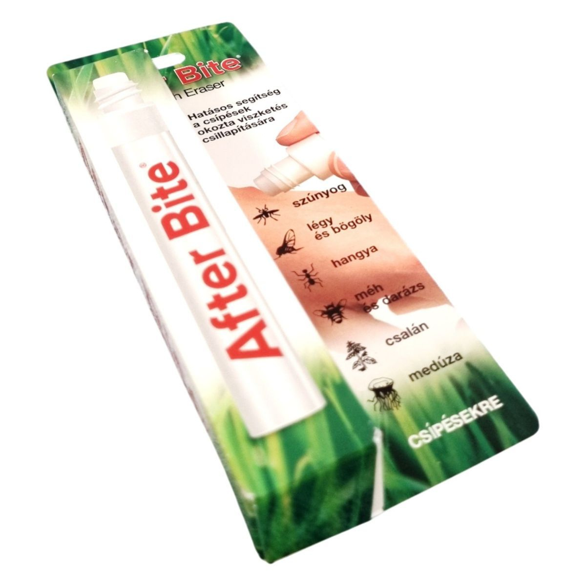 Az After Bite hatékony segítséget nyújt a különböző rovarcsípések, mint a szúnyog, légy, bögöly, hangya, méh és darázs, valamint csalán és medúza okozta viszketés csillapítására.