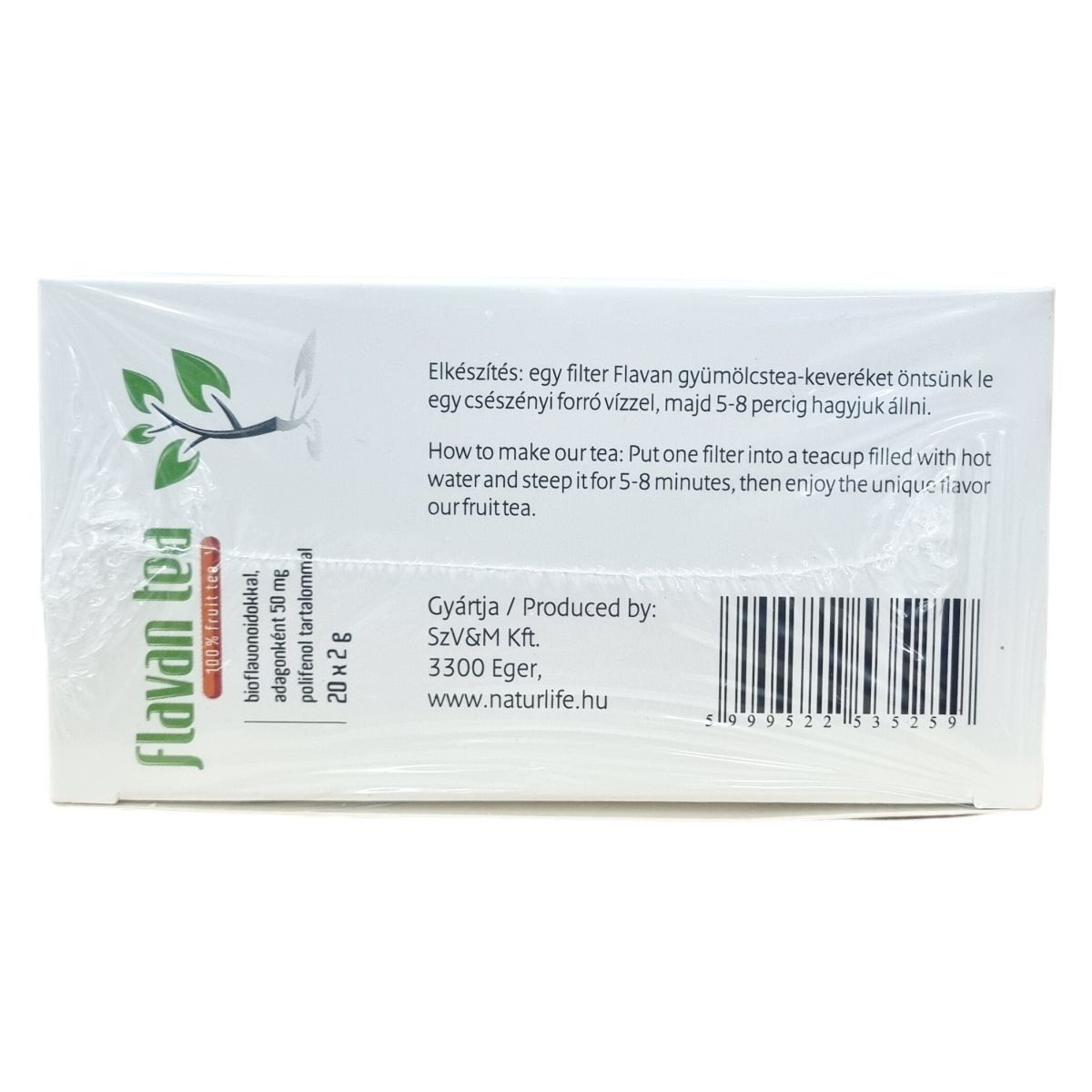 100% gyümölcstea keverék bioflavonoidokkal, adagonként 50 mg polifenol tartalommal.