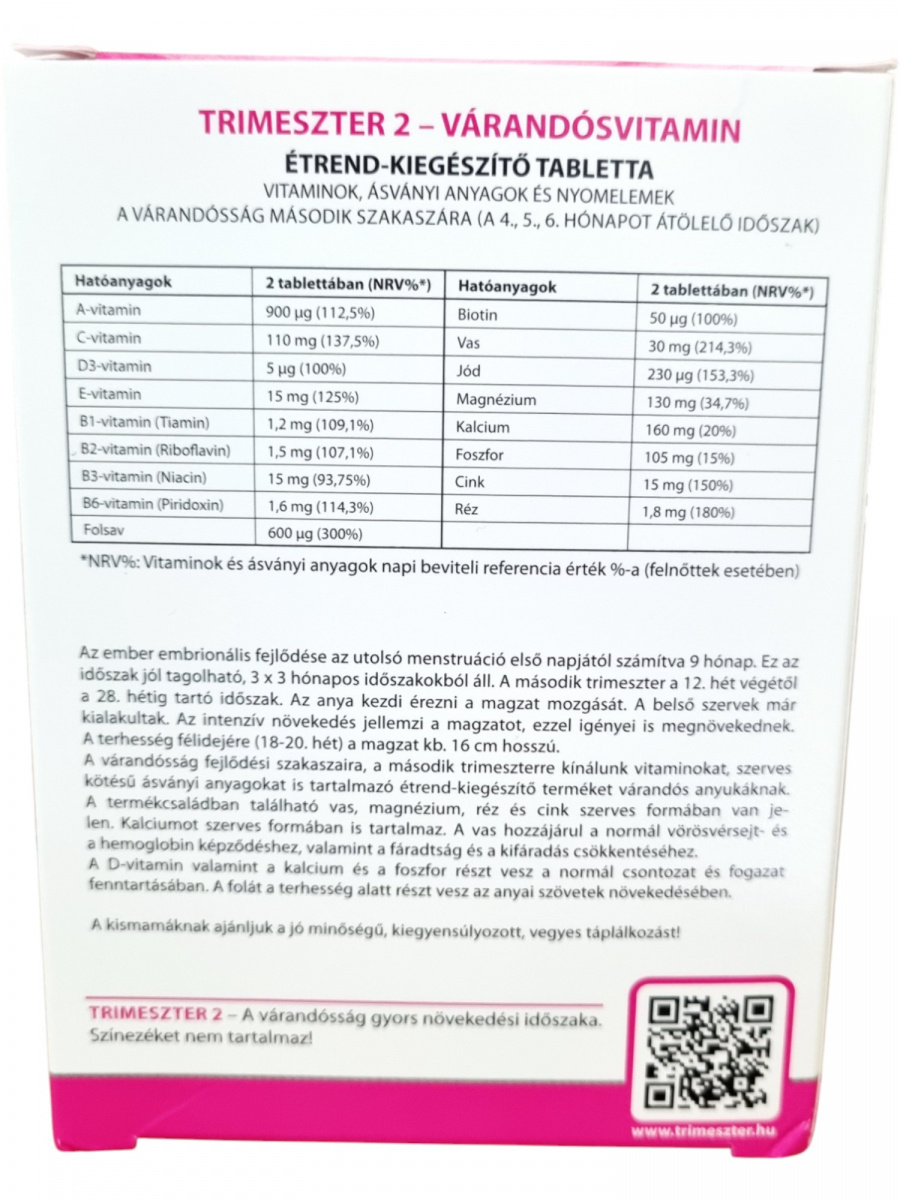 A Trimeszter 2 a várandósság második szakaszára (4–6. hónap) kifejlesztett komplex készítmény, amely vitaminokat, ásványi anyagokat és nyomelemeket tartalmaz.