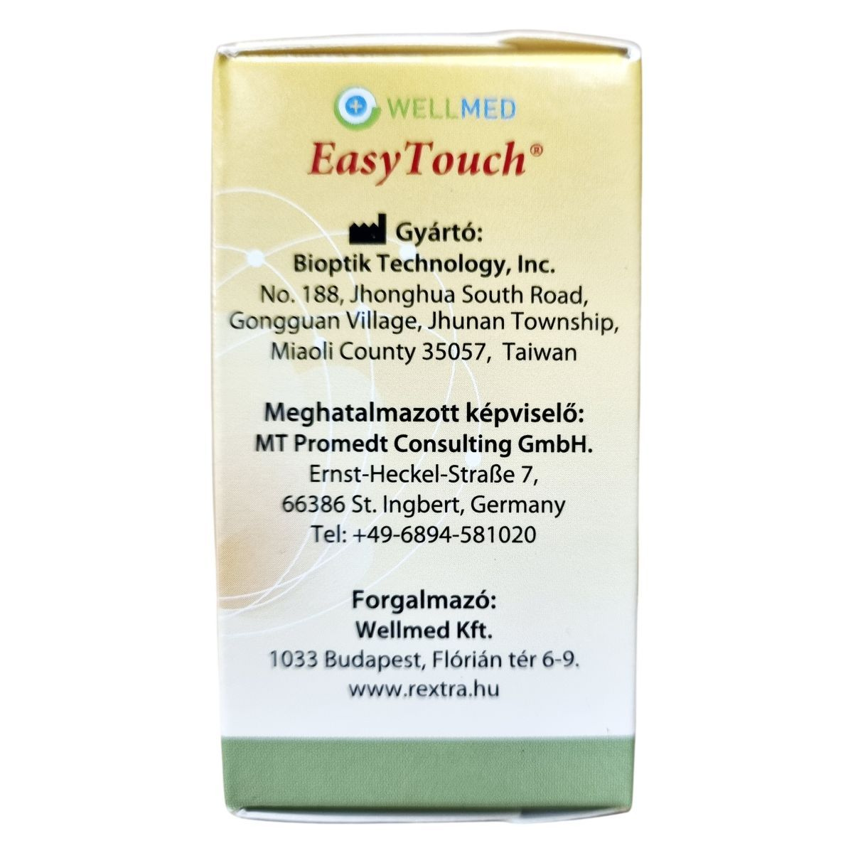 Kódkulcs mellékelve mindegyik dobozhoz, mely a készülék kalibrálását és a tesztcsík típusának felismerését automatikussá elvégzi. A Wellmed EasyTouch készülékhez használatos tesztcsíkok színkóddal vannak ellátva a könnyebb felismerhetőség érdekében, a húgysav csík narancssárga. Kiszerelés: 25 db/doboz.