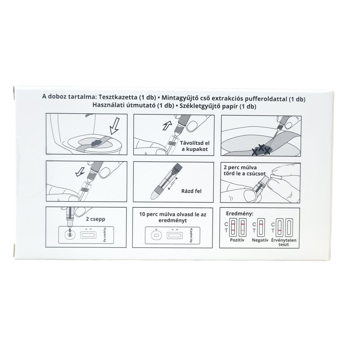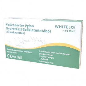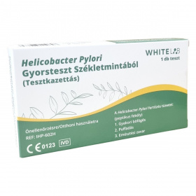 A Helicobacter Pylori Gyorsteszt székletmintából segít a Helicobacter Pylori fertőzés detektálásában, mely peptikus fekélyhez kapcsolódóan gyakori böfögést, puffadást és emésztési zavarokat okozhat. A termék egy darab tesztkazettát tartalmaz, valamint egy mintagyűjtő csövet extrakciós pufferoldattal, székletgyűjtő papírt és használati útmutatót. Az egyszerű eljárás során a mintagyűjtő cső kupakjának eltávolítása és felrázása után 2 perc múlva a csúcs letörése szükséges, majd 2 cseppet kell cseppenteni a tesztkazettára. Az eredményt 10 perc múlva lehet leolvasni. A termék otthoni, önellenőrzésre alkalmas, használata gyors és egyszerű. A gyártó a Hangzhou AllTest Biotech Co., Ltd. Kínában, az európai képviselet a MedNet EC-REP GmbH Németországban. A termék forgalmazója White Supply Kft., Békéscsaba, Magyarország. Tárolása hűtőszekrényen kívüli, 2-30 °C között javasolt.