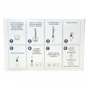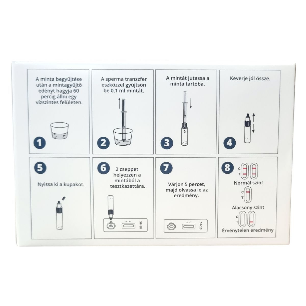 A termék egy spermakoncentráció mérésére szolgáló gyorsteszt otthoni használatra, mely 5 perc alatt ad eredményt, 98%-os pontossággal. A doboz tartalmazza a használati útmutatót, mintagyűjtő edényt, transzfer eszközt, minta tartót, tesztkazettát és mintahígító puffert. A gyártó a Hangzhou AllTest Biotech Co., Ltd., míg a forgalmazó a White Supply Kft. A termék megfelel az IVD szabványnak, és CE jelöléssel rendelkezik. Az eredmény alapján megállapítható, hogy a spermakoncentráció normál vagy alacsony szinten van, vagy érvénytelen a vizsgálat.