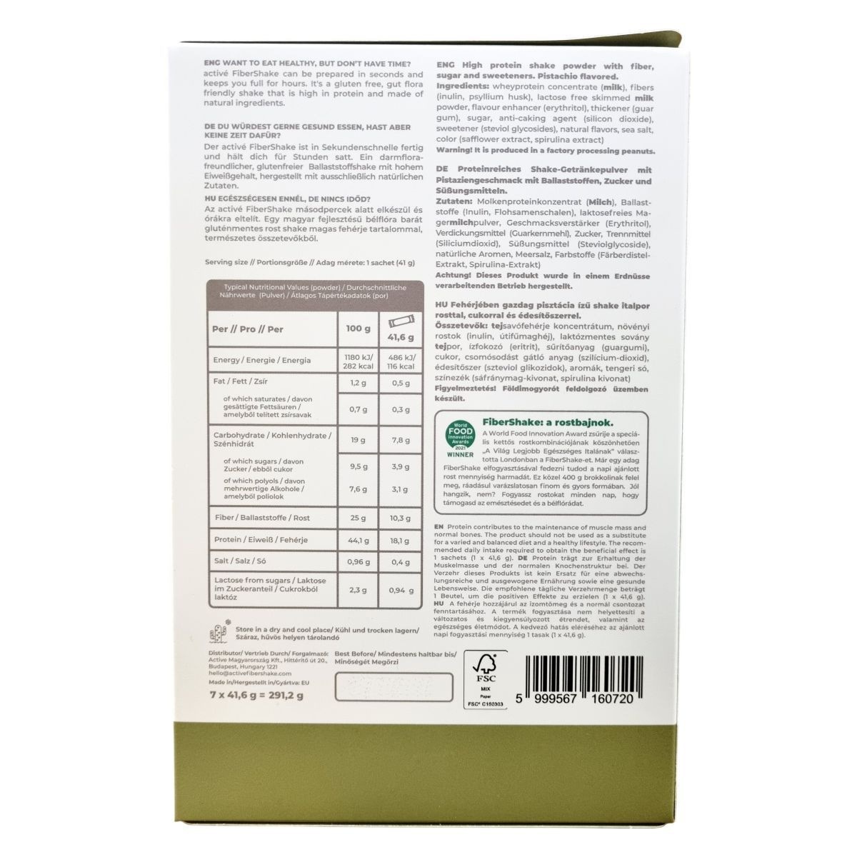 Az activé FiberShake egy magyar fejlesztésű, pisztácia ízű fehérjében és rostokban gazdag shake italpor, amely természetes összetevőkből készül és gluténmentes. A termék gyorsan elkészíthető, bélflóra-barát és laktózmentes, valamint magas fehérjetartalmának köszönhetően hosszú ideig teltségérzetet biztosít. A World Food Innovation Award 2021 londoni díjazottja, a speciális kettős rostkombináció révén már egy adag fedezi a napi javasolt rostbevitel harmadát, amely a brokkolihoz hasonló rostmennyiséget jelent. A fehérje támogatja az izomtömeg és a normál csontrendszer fenntartását, azonban a termék nem helyettesíti a változatos és kiegyensúlyozott étrendet, sem az egészséges életmódot. A javasolt napi adag 1 tasak (41,6 g). Az összetevők között megtalálhatók a tejsavófehérje koncentrátum, inulin, útifűmaghéj, valamint természetes aromák és színezékek. Felhasználásakor víz vagy tej hozzáadása után gyorsan elkészíthető, és fogyasztás után egy pohár víz segíti a rostok megdagadását, amely támogatja az emésztést és a bélflórát.