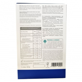 tejsavófehérje koncentrátum, növényi rostok (inulin, útifűmaghéj), laktózmentes sovány tejpor, ízfokozó (eritrit), sűrítőanyag (guargumi), cukor, csomósodást gátló anyag (szilícium-dioxid), édesítőszer (sztéviol glikozidok), aromák, tengeri só