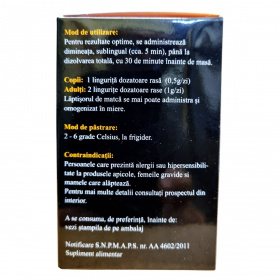 Az ALBEENA Lăptișor de matcă pur egy prémium minőségű étrend-kiegészítő, amely tiszta méhpempőt tartalmaz. A termék élő táplálékként van megjelölve, és hűtőszekrényben tárolandó. A használati útmutató szerint a legjobb eredmény érdekében reggel, sublingualisan kell alkalmazni, étkezés előtt 30 perccel. A termék gyermekek és felnőttek számára is ajánlott, de nem javasolt terhes nőknek, szoptató anyáknak, valamint azoknak, akik allergiásak a méhészeti termékekre. További részletek a belső tájékoztatóban találhatók.