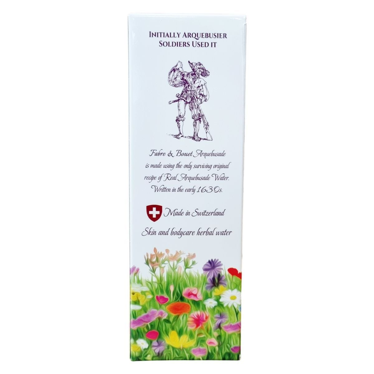 A FABRE & BOUET® ARQUEBUSADE Herbal Water egy Svájcban készült, egyedülálló, 75 gyógynövényből készült bőrápoló kivonat, amely az eredeti 1630-as években írt Arquebusade víz receptúra alapján készült. Ez a gyógynövényes víz erősíti, nyugtatja és regenerálja a bőrt, miközben tisztítja és táplálja azt. Használható arcra és testre is, bőrbarát összetevőinek köszönhetően rendszeres alkalmazása hozzájárul a bőr vitalitásának megőrzéséhez. Minden bőrtípusra alkalmas, de használat előtt érdemes bőrpróbát végezni. A termék történelmi értékkel bír, hiszen az Arquebusade Water autentikus visszaállítása a mai kor igényeihez igazítva, 38° alkoholtartalommal. A termék elősegíti a bőr egészséges állapotának fenntartását, kiválóan alkalmas szépségápolásra és mindennapi bőrápolásra.