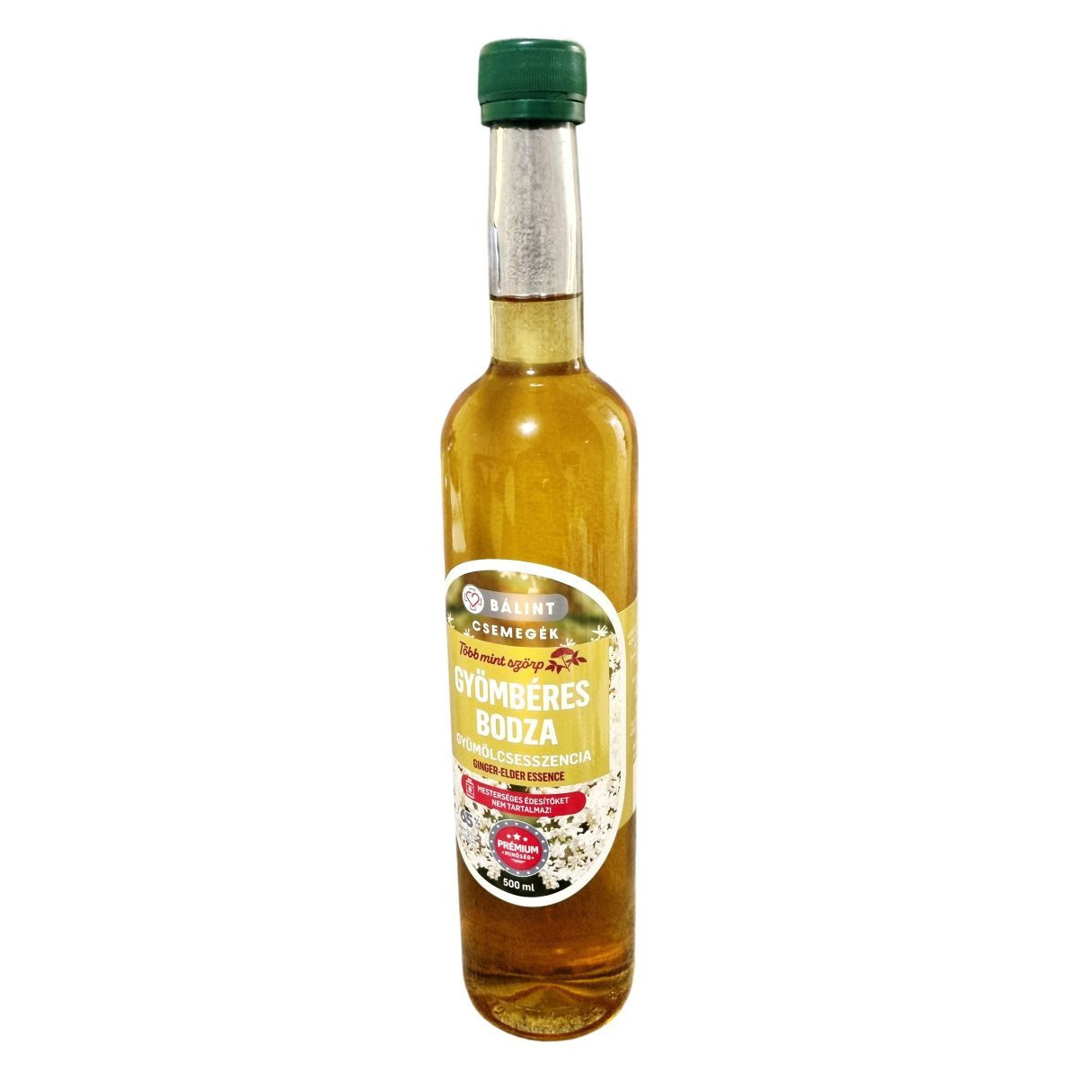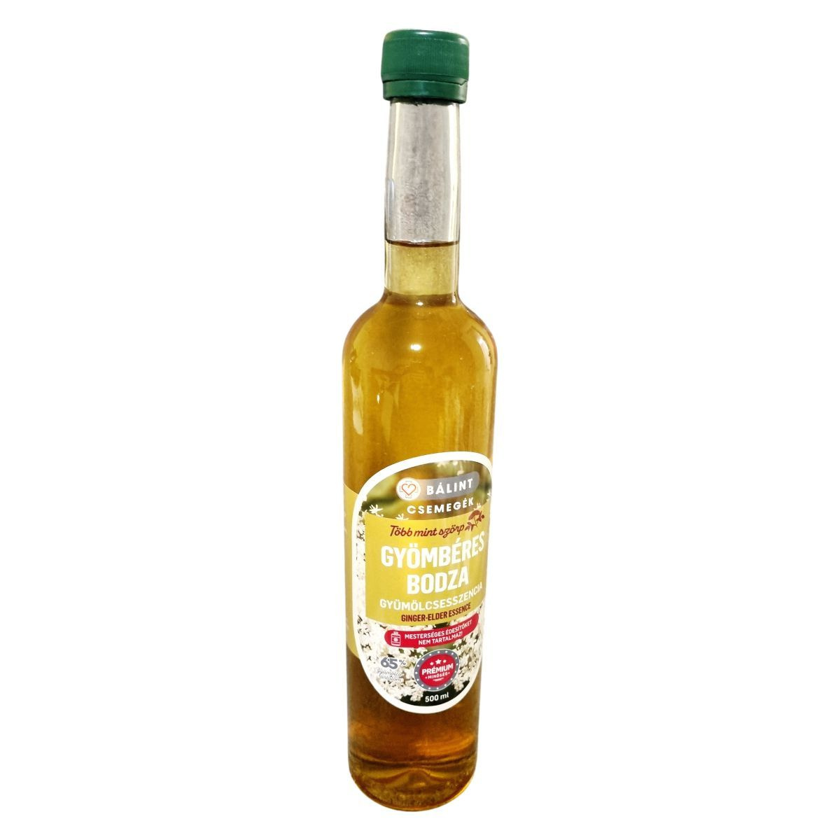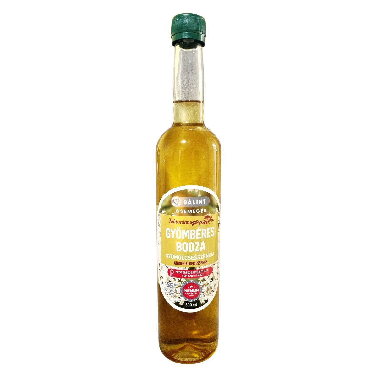 A gyömbéres bodza gyümölcsesszencia szőlő és bodzavirág kivonat felhasználásával készül, gyömbért és többféle gyógynövényt tartalmazó kivonattal. Cseppmentes kiöntővel ellátott, környezetbarát csomagolású termék, amely kizárólag az alapanyagok természetes nátriumtartalma miatt tartalmaz sót.