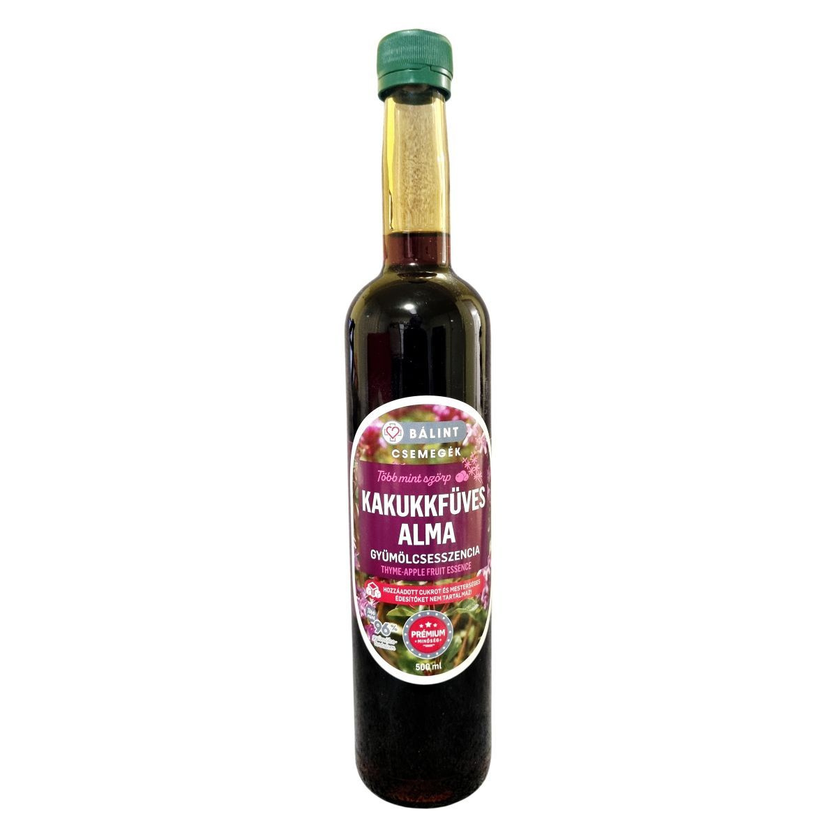 Prémium minőségű kakukkfüves alma gyümölcsesszencia több mint 96% gyümölcstartalommal, feketeribizlivel és kakukkfű párlattal.