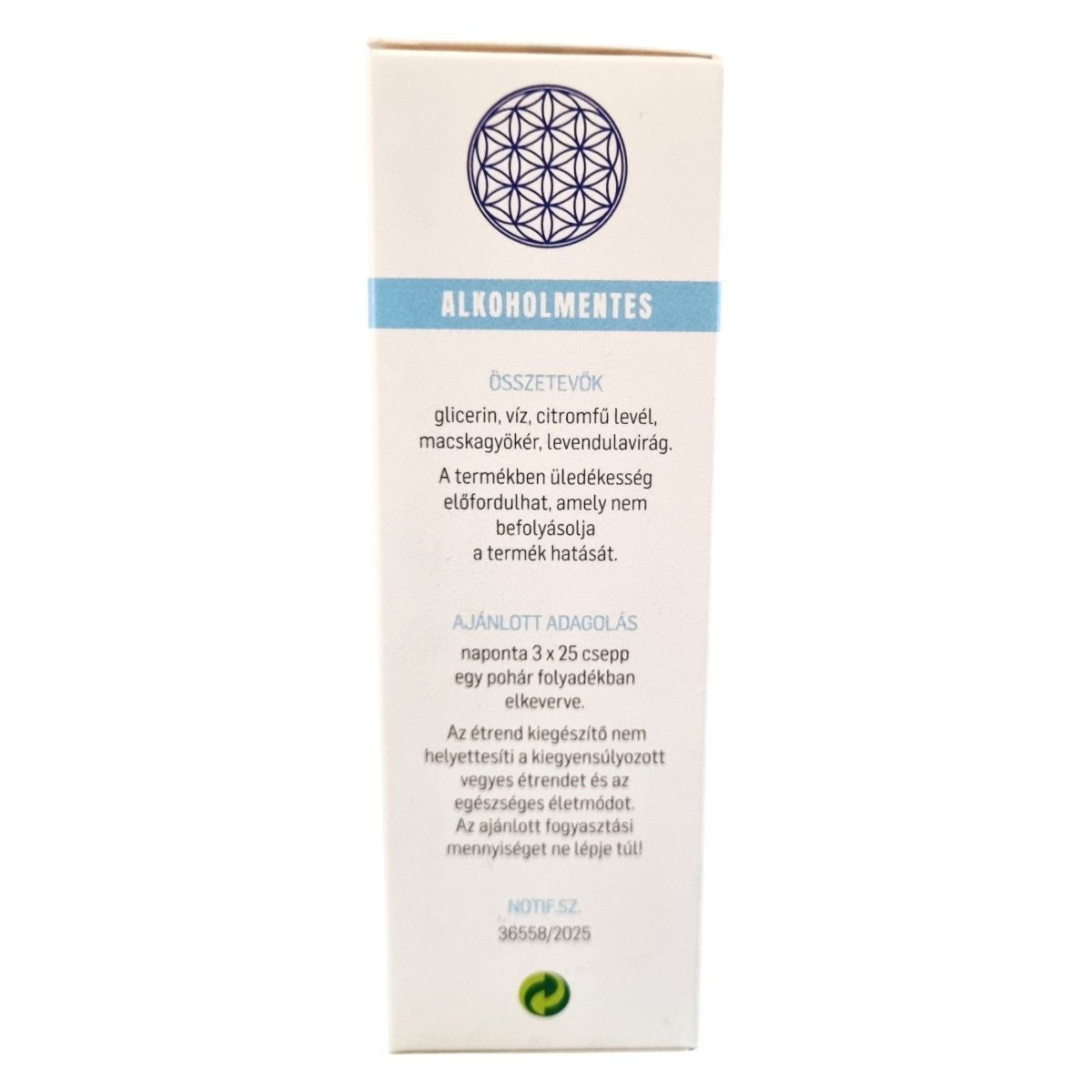 Az alkoholmentes Idegeimre Mentek Cseppek növényi összetevőket tartalmaznak, mint a citromfű, macskagyökér és levendulavirág, amelyek hozzájárulhatnak a nyugalom és relaxáció támogatásához.