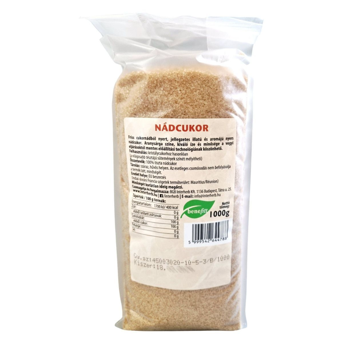 A benefitt Nádcukor 100% valódi nádcukorból készül, adalékanyagok nélkül. Az EU-ból származó termék, amely az Indiai-óceáni Francia szigetek termőterületeiről, Mauritius és Réunion szigetekről származik. A termék minőségét korlátlan ideig megőrzi, és kiválóan alkalmas sütéshez és főzéshez. A nádcukor aranysárga színe és jellegzetes illata a vegyi eljárásoktól mentes előállítási technológiának köszönhető. A termék csomagolását és forgalmazását a BGB Interherb Kft. végzi.
