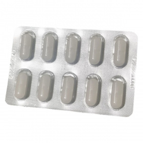 kalcium-karbonát, maltodextrin, tömegnövelő szerek (mikrokristályos cellulóz, hidroxi-propil-metil-cellulóz, polivinilpirrolidon, polivinilpolipirrolidon, izomalt), emulgeálószerek (hidroxi-propil-cellulóz, poliszorbát 80), csomósodást gátló anyag (zsírsavak magnézium sója), nedvesítőszer (polidekstróz), fényezőanyag (zsírsav)