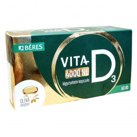 A Béres VITA D 4000 NE lágyzselatin kapszula egy D3-vitamint tartalmazó étrend-kiegészítő, amely extraszűz olívaolajban oldott formában érhető el. A termék célja, hogy támogassa az immunrendszer működését, az izomfunkciókat, valamint a csontok és fogak egészségét. A D-vitamin szerepet játszhat a sejtosztódásban is. A kapszulák könnyen lenyelhetők, és napi egy kapszula fogyasztása ajánlott felnőttek számára. A termék nem helyettesíti a kiegyensúlyozott étrendet, és nem ajánlott bizonyos egészségügyi állapotok esetén. A Béres Gyógyszergyár Zrt. által forgalmazott termék minőségét a doboz oldalán jelzett időpontig őrzi meg.