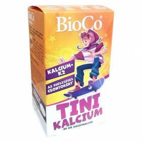 A BioCo® TINI KALCIUM rágótabletta kifejezetten tinédzsereknek és intenzív növekedési időszakban lévő gyermekeknek készült, 3 év felett. Három kulcsfontosságú összetevő – kalcium, foszfor és D-vitamin – komplex formában támogatja a gyermekek csontrendszerének egészséges növekedését és fejlődését. A magas, napi 1000 NE D3-vitamin hozzájárulhat az immunrendszer megfelelő működéséhez és a csontozat fejlődéséhez. A készítmény továbbá szerves formájú cinket, C-vitamint és tiszta all-transz MK-7 formájú K2-vitamint is tartalmaz, amelyek együttesen támogathatják az egészséges csontfejlődést. A rágótabletták természetes cseresznye aromával készülnek, cukorral és édesítőszerrel, és érzékenyek a páratartalomra. A termék kizárólag Magyarországon fejlesztett és gyártott, és nem tartalmaz laktózt vagy glutént.