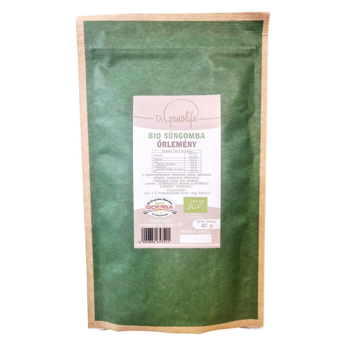 A Dr Ganolife BIO Süngomba őrlemény természetes módon előforduló cukrokat tartalmaz, és hozzáadott cukrot nem tartalmaz. A termék minőségét hosszan megőrzi, és a hagyományos tudáson alapuló bio gombatermék, mely a modern kor emberének igényeit is szem előtt tartja. Étrend-kiegészítőként napi 1-3 mokkáskanál fogyasztása javasolt, főzve vagy forrázva.