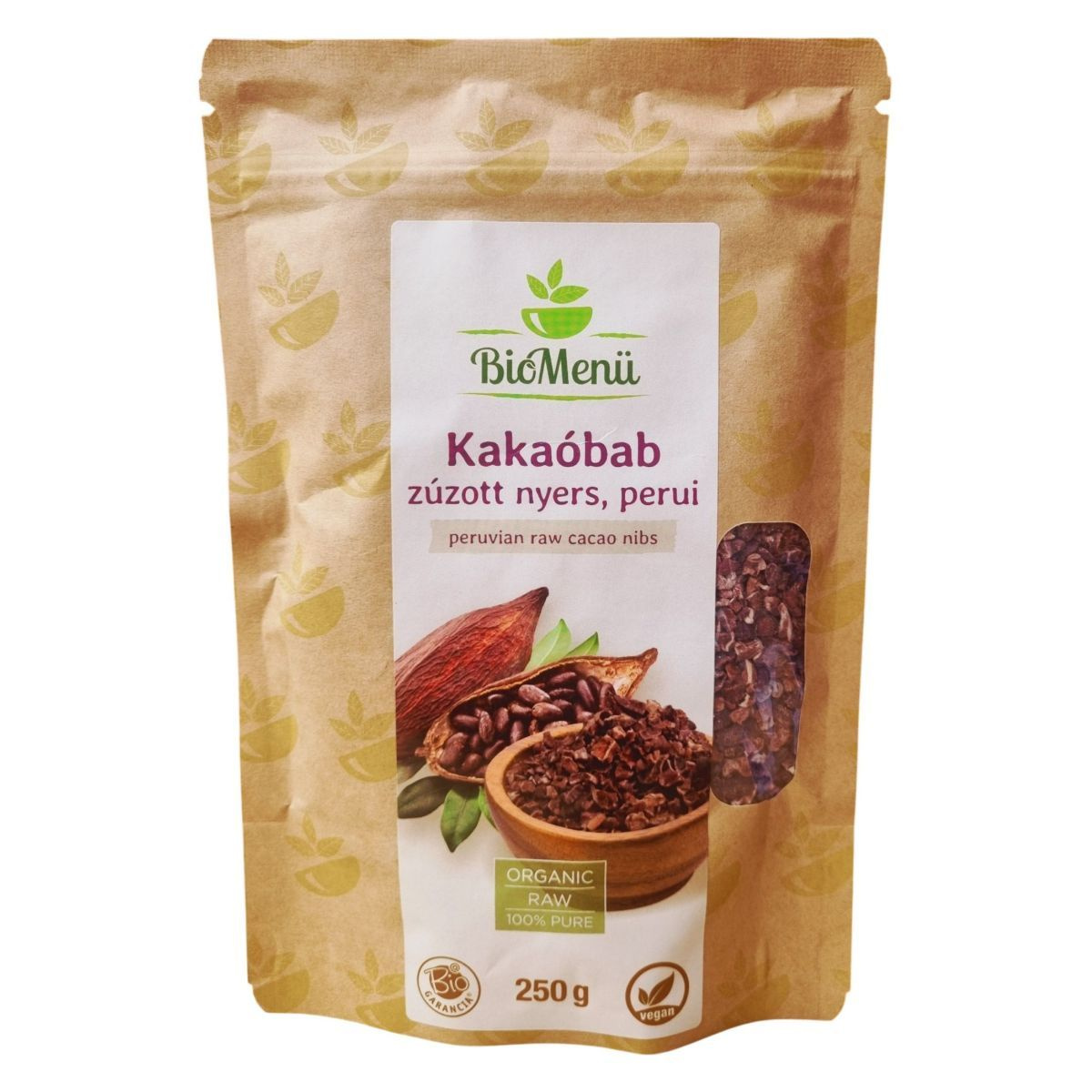 A BioMenü zúzott nyers kakaóbabja Peruból származik, 100% bio minőségű, hántolt kakaóbabból készült. Ideális választás azok számára, akik a természetes és tiszta kakaó ízét keresik.