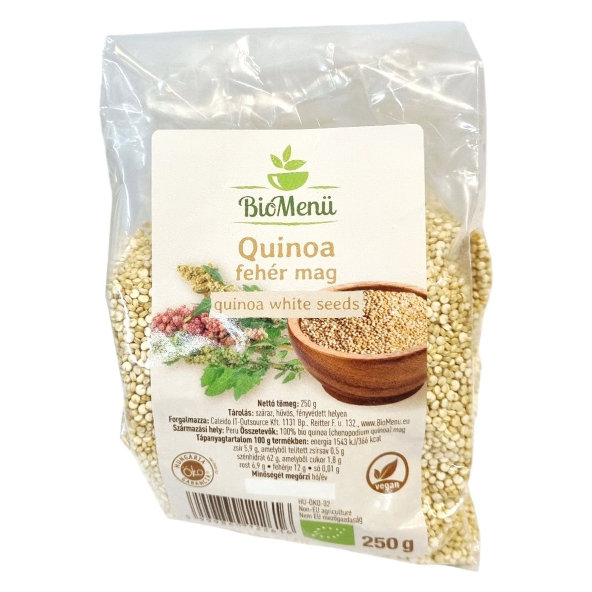 A BioMenü Quinoa fehér mag egy 100% bio quinoa termék, amely Peruból származik. Ideális választás vegán étrendet követők számára, és különleges figyelmet fordít a minőségre és a fenntarthatóságra.