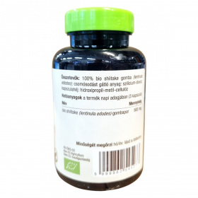 A BioMenü Shiitake gomba kapszula egy prémium minőségű étrend-kiegészítő, amely 100% bio shiitake gombaport tartalmaz. A shiitake gomba (lentinula edodes) régóta ismert lehet jótékony hatásairól, és hozzájárulhat az immunrendszer támogatásához. A termék bio és raw minősítésű, nem EU mezőgazdaságból származik, és Kínában készül. A kapszulák hidroxipropil-metil-cellulóz alapúak, így vegetáriánusok számára is alkalmasak lehetnek. A termék forgalmazója a Caleido IT-Outsource Kft., és a termék rendelkezik HU-ÖKO-02 tanúsítvánnyal, valamint notifikációs számmal. A shiitake gomba kapszula napi ajánlott adagja 3 kapszula, amely 900 mg bio shiitake gombaport biztosít. Fontos, hogy az ajánlott fogyasztási mennyiséget ne lépje túl, és az étrend-kiegészítő nem helyettesíti a kiegyensúlyozott táplálkozást és az egészséges életmódot.