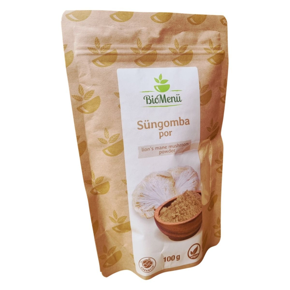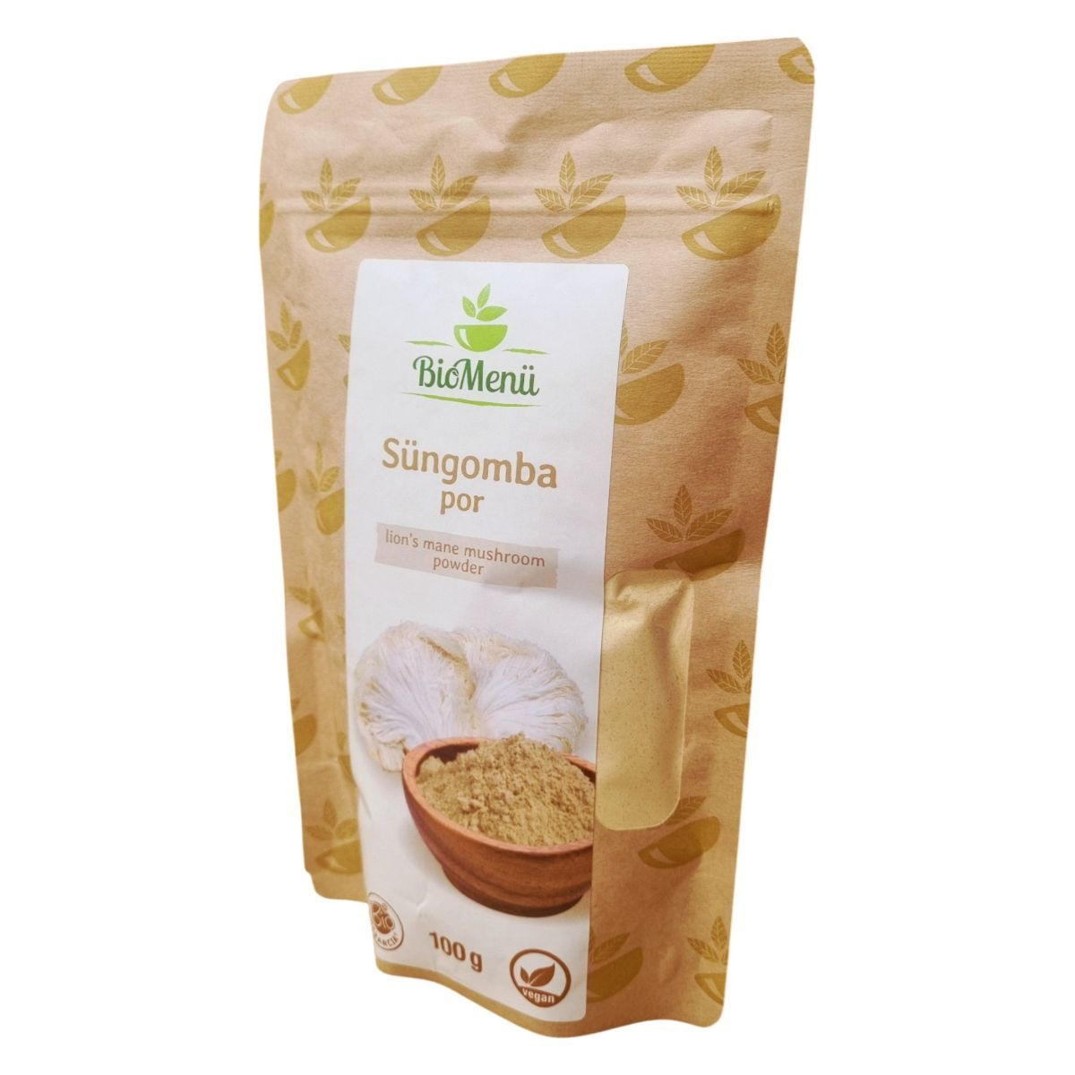 A BioMenü Süngomba por 100% bio süngombát tartalmaz, amely hozzájárulhat az egészséges életmód támogatásához. A termék bio és vegán minősítéssel rendelkezik, és különböző étrendi irányzatokhoz is illeszkedhet.