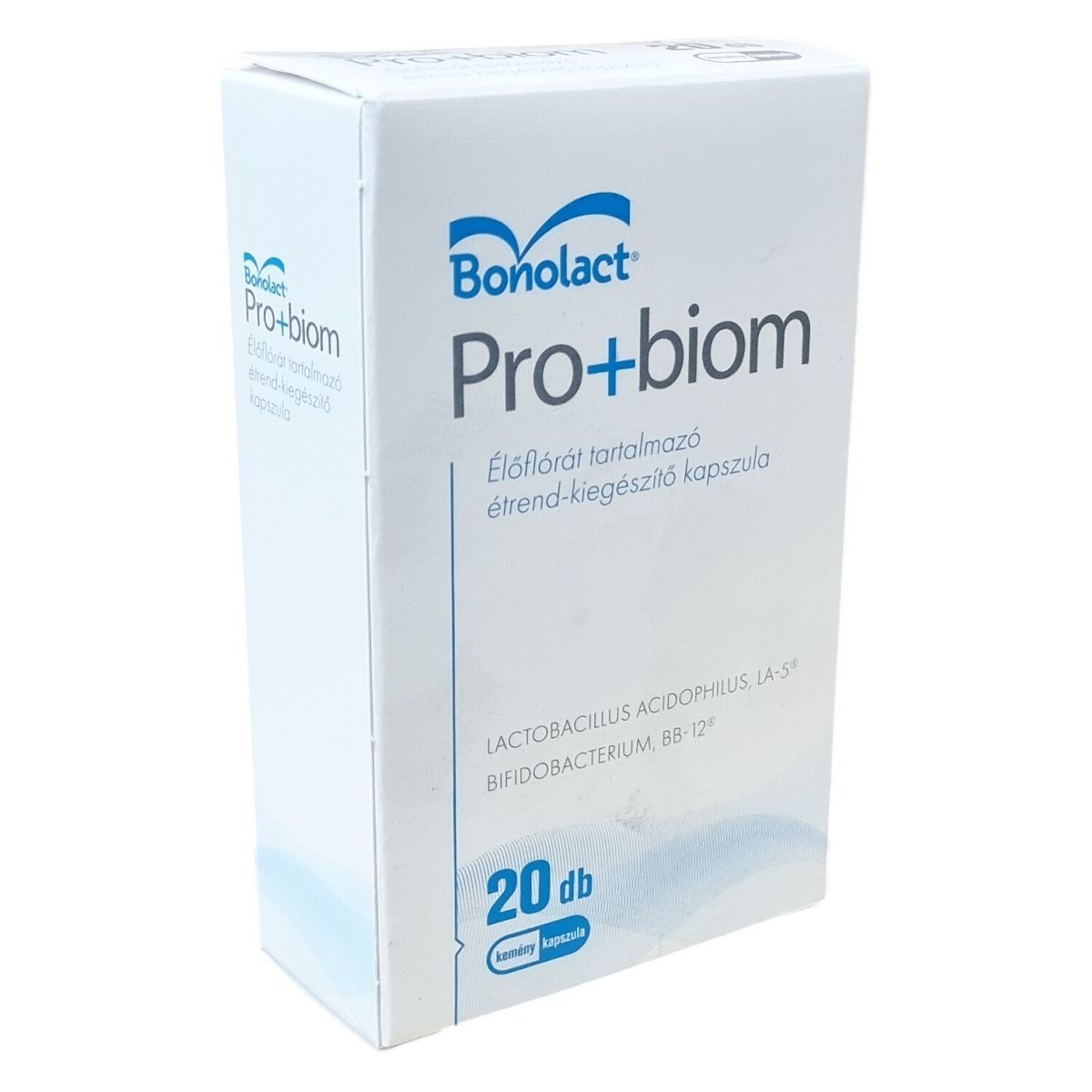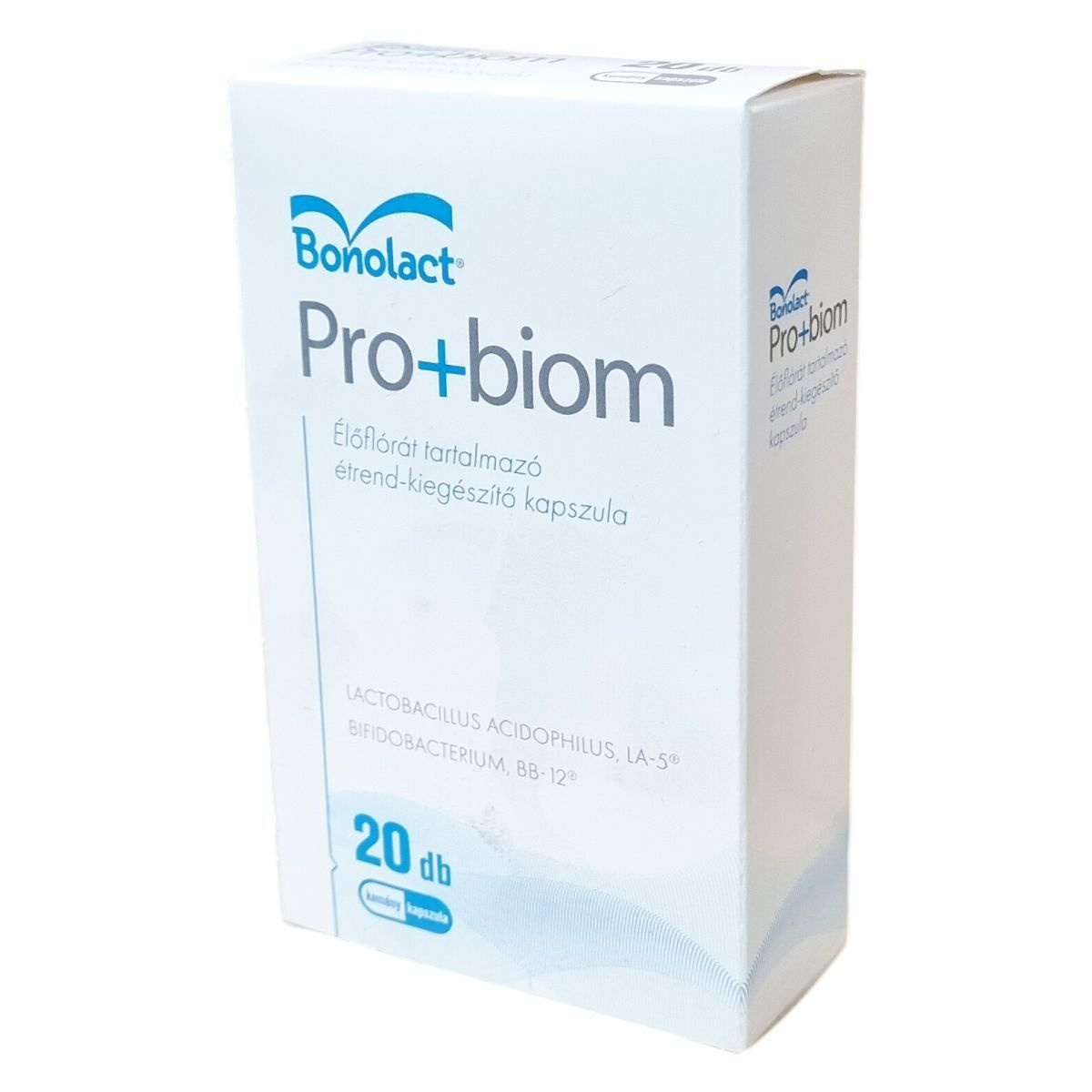 A Bonolact Pro+biom kapszula Lactobacillus acidophilus LA-5® és Bifidobacterium animalis subsp. lactis BB-12® bejegyzett védjegyű aktív baktériumtörzseket tartalmaz, amelyek kapszulánként legalább 2 milliárd telepképző egységben vannak jelen. Az adagolási útmutató szerint gyermekeknek és felnőtteknek eltérő mennyiségű kapszula javasolt, és a kapszula tartalma 37 °C alatti folyadékban feloldva fogyasztható. Antibiotikum-kezelés esetén a kapszula bevételét legalább 3 órával a gyógyszer után ajánlott alkalmazni. A termék összetevői között szerepel dextróz, a kapszula anyaga pedig hidroxipropil-metil-cellulóz és kalcium-karbonát. A termék ápolja az egészséges bélflórát, ugyanakkor nem helyettesíti a változatos étrendet és egészséges életmódot, valamint bizonyos esetekben a használata nem ajánlott. A minőség megőrzését a doboz alján jelzett időpontig garantálja.