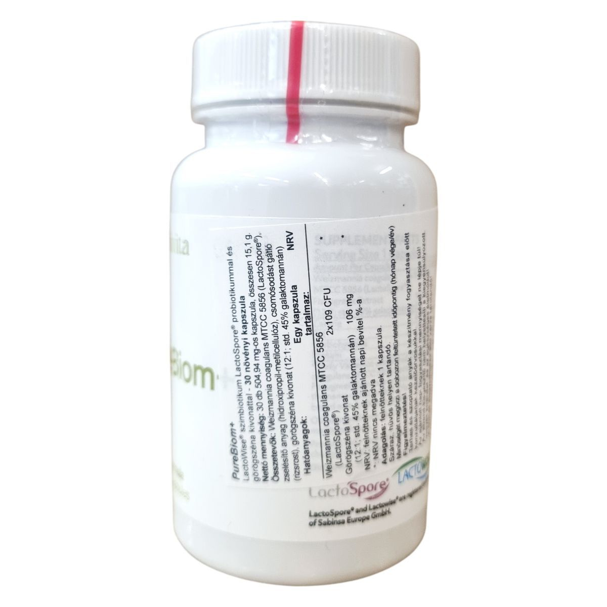 A PureBiom+ a spórás LactoSpore probiotikum és az azt tápláló görögszéna kivonat, mint prebiotikum LactoWise névvel levédett szimbiotikus keveréke.