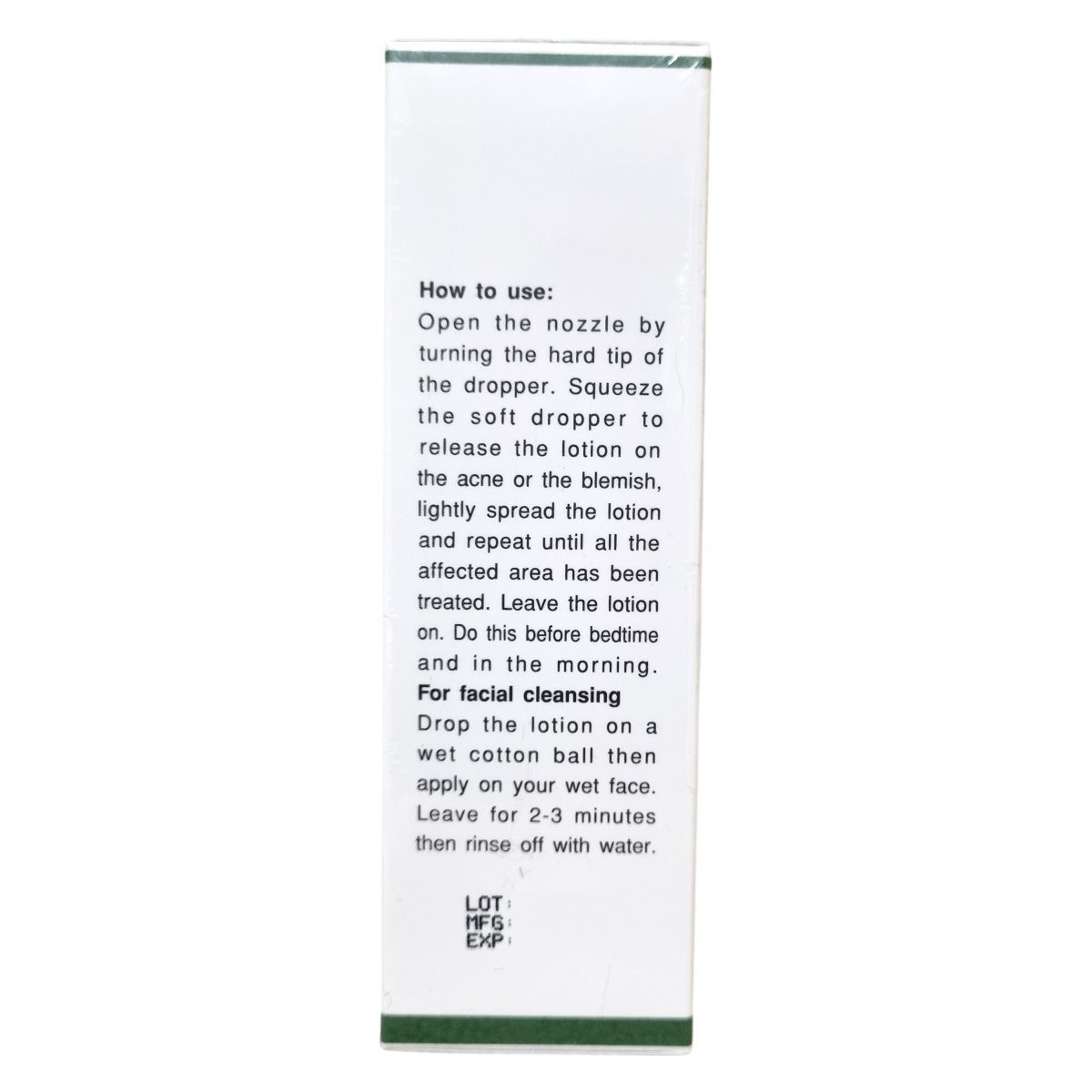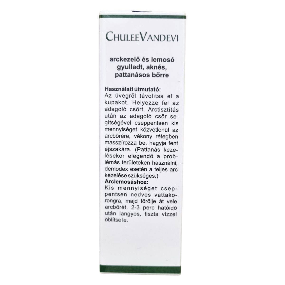 Arckezelő és arclemosó lotion gyulladt, aknés, pattanásos bőrre, valamint pattanások, foltok és bőröregedés jeleinek kezelésére.