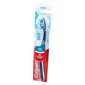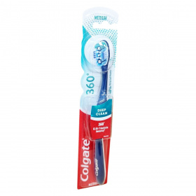 360 Deep Clean fogkefe. Közepes keménység. Polírozó kehellyel. Antibakteriális sörték védik a fogkefét.