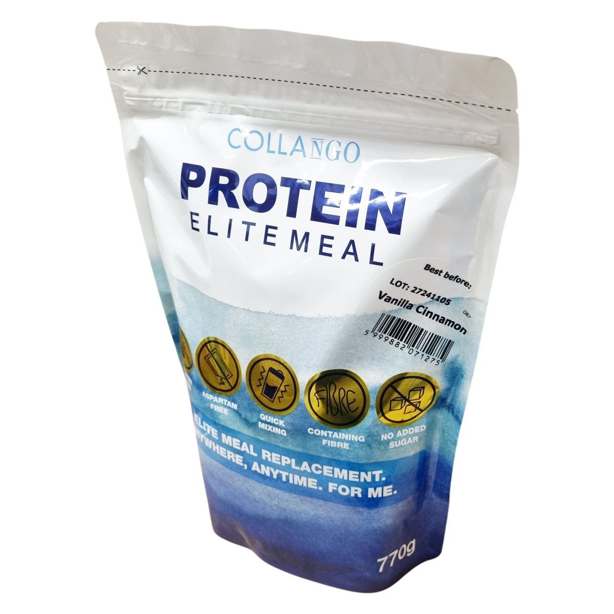 A Collango Protein Elite Meal egy könnyen oldódó, magas fehérjetartalmú és rostban gazdag étkezéshelyettesítő por, mely tej és növényi eredetű összetevőket tartalmaz, valamint hidrolizált kollagént. A termék ízesítése vanília-fahéj, természetes aromákkal kiegészítve. A készítmény mentes a gluténtől és az aszpartámtól, és nem tartalmaz hozzáadott cukrot. Étrend-kiegészítőként ajánlott bevenni, folyadékkal elkeverve, a vitamin- és ásványianyag bevitel kiegészítése mellett. Az összetevők közé tartozik a tejsavófehérje-koncentrátum emulgeálószerrel, tejfehérje-koncentrátum, cikóriából származó inulin, collagen, valamint sovány tejpor. Fogyasztása segítheti az egészséges életmódot, különösen aktív vagy változatos táplálkozást igénylő élethelyzetekben.