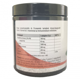 Magas proantocianidin és D-mannóz tartalmú étrend-kiegészítő italpor L-lizinnel és C-vitaminnal, amely támogathatja az immunrendszer egészségét.