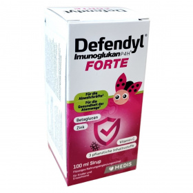 A Defendyl Imunoglukan P4H Forte szirup az immunrendszer és a légutak egészségének rövid távú támogatására szolgál. A C-vitamin és a cink hozzájárul az immunrendszer normál működéséhez, a fekete bodza pedig támogatja az immunfunkciókat. A kereklevelű harmatfű segít megőrizni a légutak egészségét.